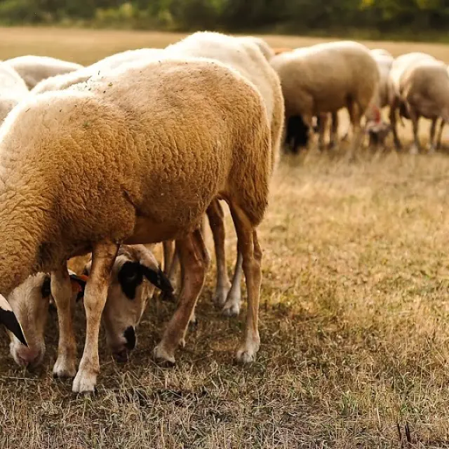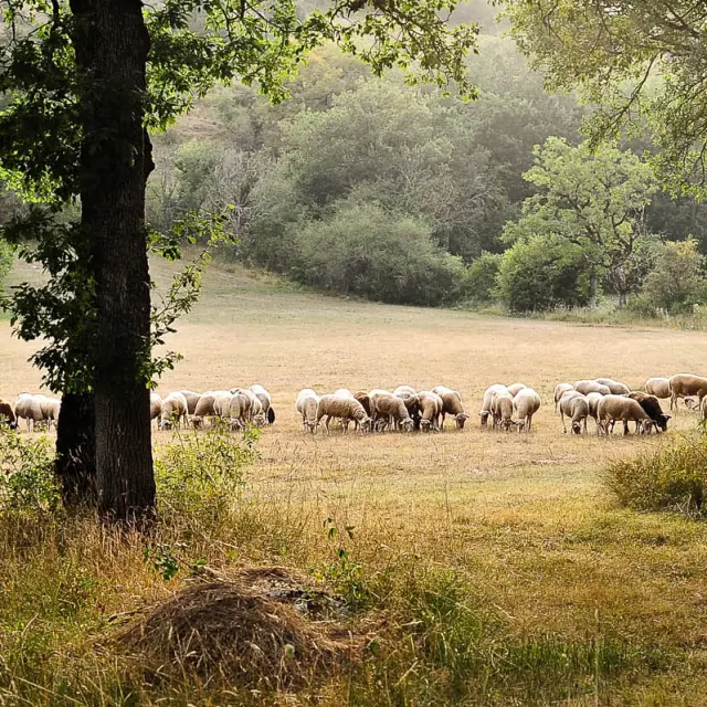 The some 40 000 lambs raised here yearly are of the Caussenarde du Lot breed, noticeable for their black ears, and circles of dark black colouring around their eyes. According to local legend, a shepherd took some charcoal and coloured around their eyes in order to offer protection from the sun – they continue to be born looking like this to this day!
