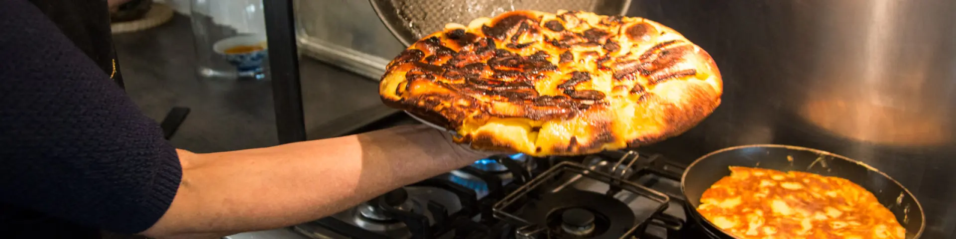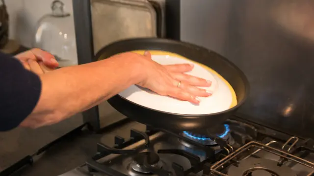 For those feeling skillful, flip the Pescajoune directly in the pan.