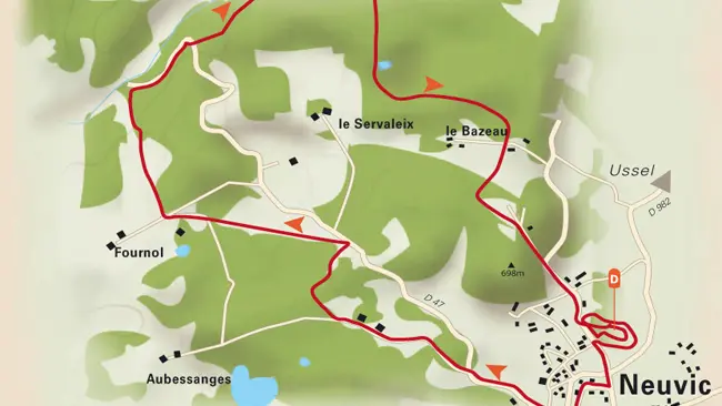 Starting point in Neuvic: follow the D171 towards Saint-Angel, continue for 200m, then park on the right at the entrance to the Puy Chaffaud arboretum "