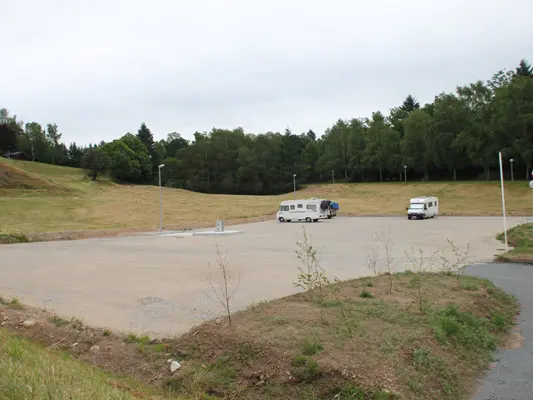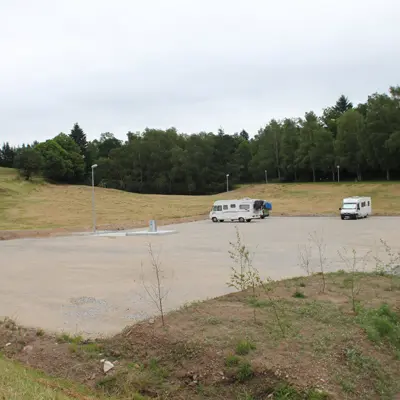 Service and parking area open from April to September, located at the entrance to the Garenne municipal campsite and all shops. 30 pitches. Water connection, wastewater and sanitary facilities drained. Free of charge.