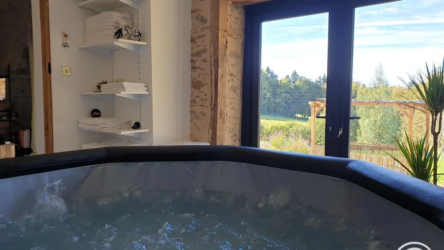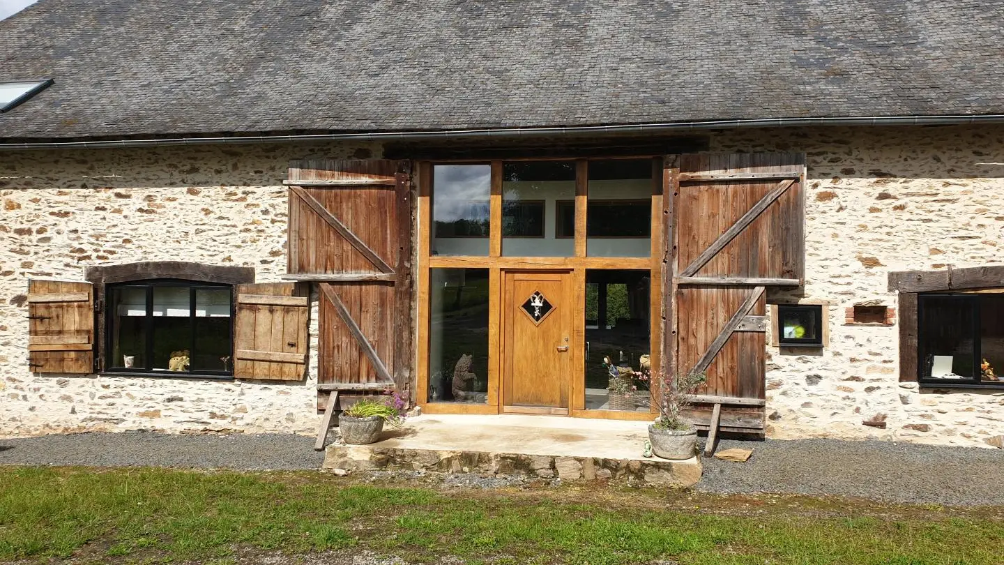 Sylvie and Thierry welcome you to their superb, fully-renovated barn in the heart of the Corrézienne countryside, on a hectare of land, with the charm of a brook providing freshness (rediscover nature and its wildlife), calm and relaxation assured. Located 10 minutes from Lubersac and Arnac Pompadour. Swimming pool. Picnic area (dining area in natural wood, panoramic view of the park and pool). int spa available all year round