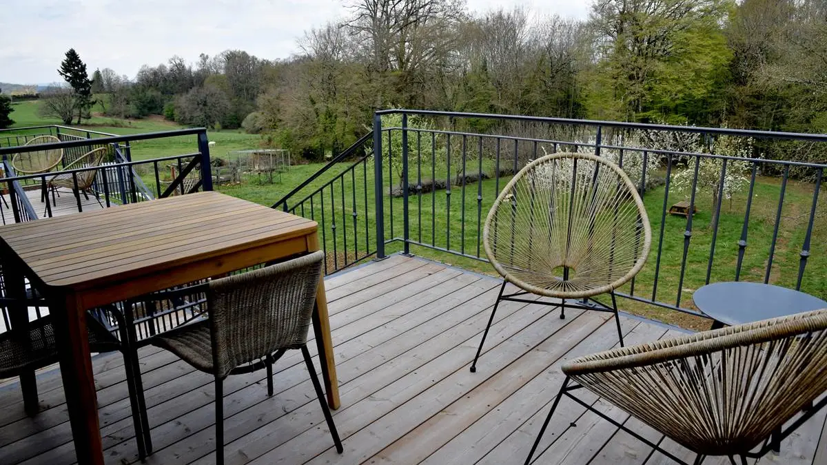 Le Relais de Laborde is a stone and slate building set in over 1 hectare of greenery. It can accommodate up to 7 people, depending on the type of accommodation offered, i.e. chambres d'hôtes and gîtes, depending on the season. Each has its own entrance and terrace.