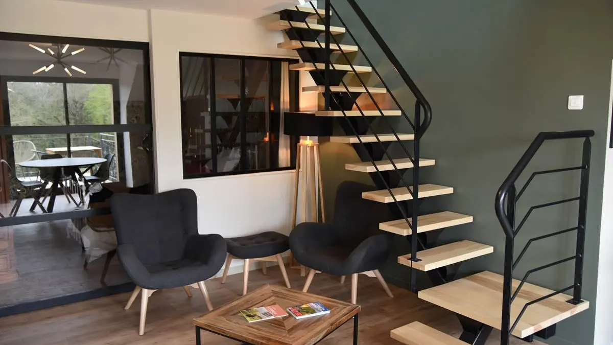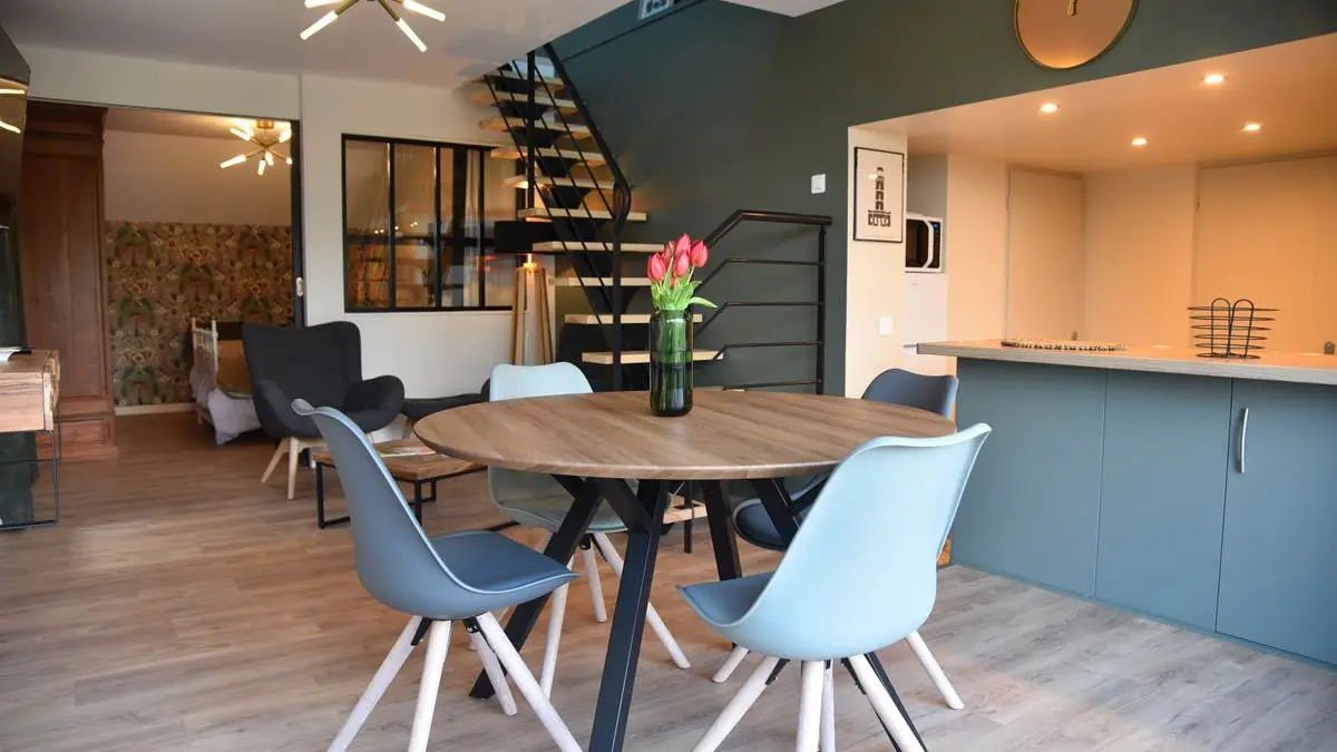 The "Brive La Gaillarde" gite can accommodate up to 4 adults. You'll find all the comforts you need for a great vacation with family or friends. It has a terrace and comprises a main room with an open-plan fitted and equipped kitchen, a sitting area with TV, and a bedroom insulated by a sliding bay window. On the same level are a shower room and separate toilet. Upstairs is a second open-plan bedroom. The gîte is equipped with air conditioning and wifi (internet connection via fiber).