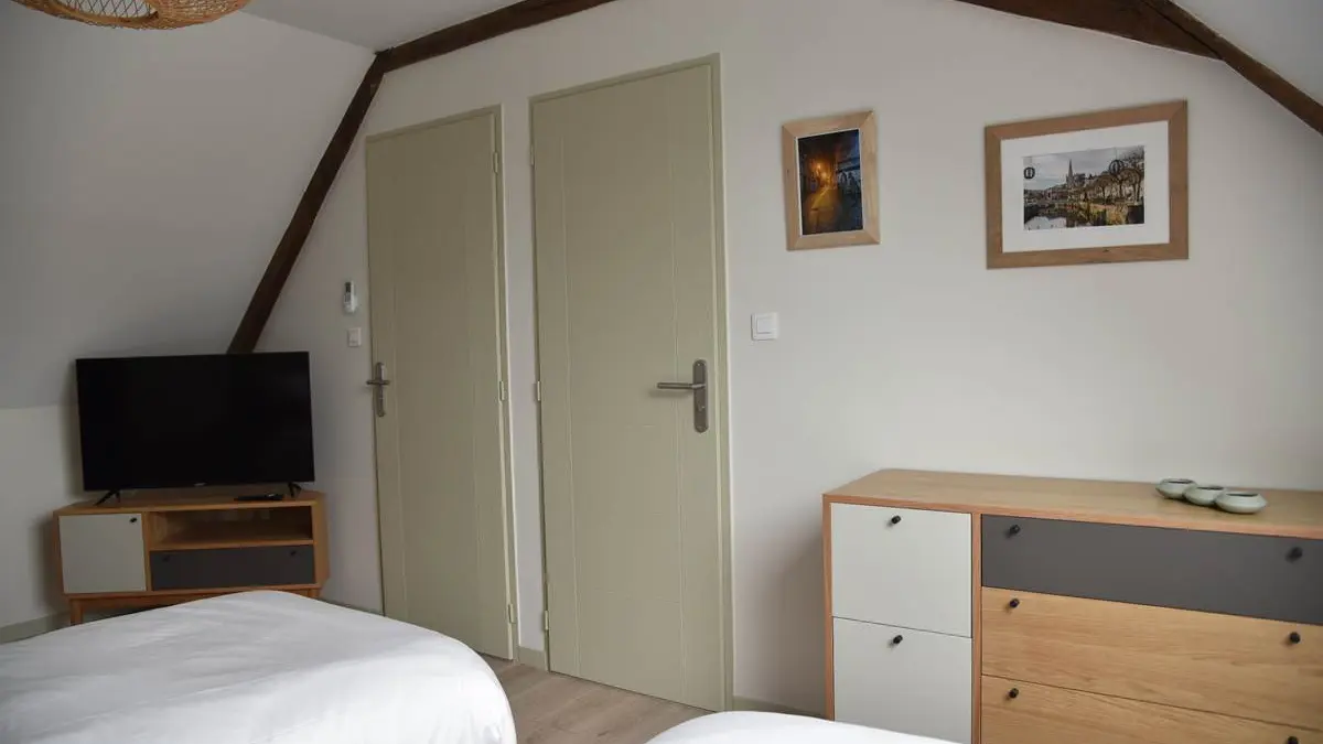 The 2 bedrooms, "Tulle" and "Aubazine", are on the first floor, each with 2 single beds (90cm) and one double bed (160cm), and both have a wardrobe, connected TV, shower room and separate WC.