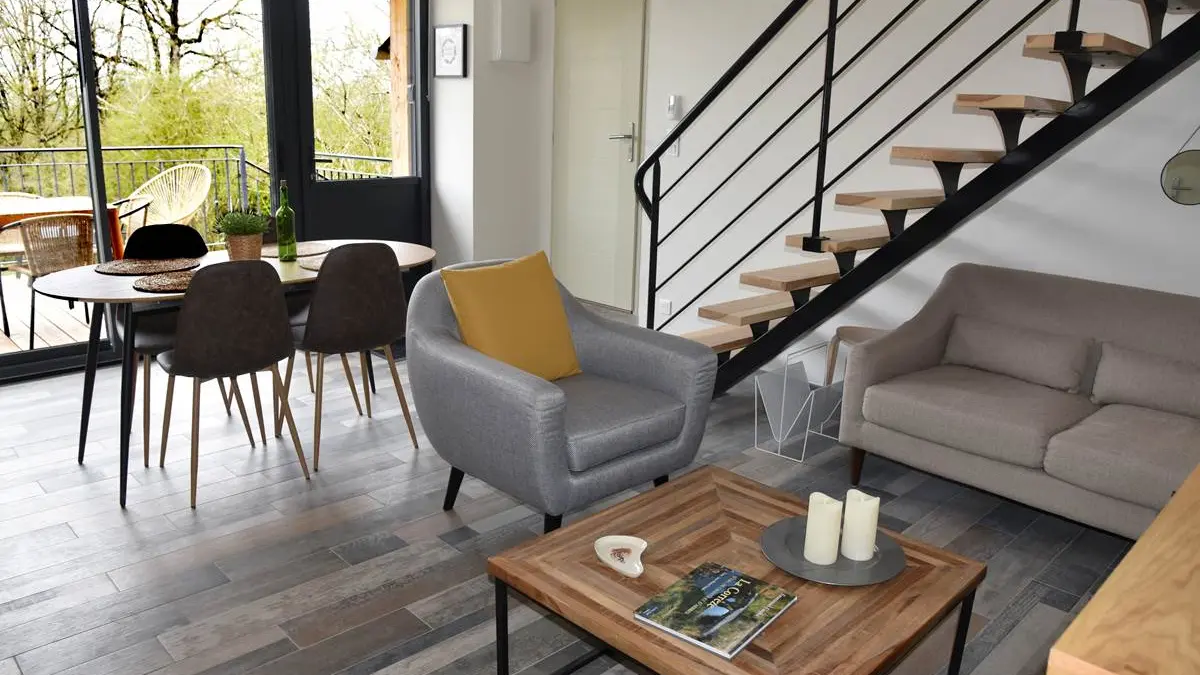The "Corrèze" gîte can accommodate up to 4 adults. You'll find all the comforts you need for a great vacation with family or friends. It has a terrace and comprises a main room with an open-plan kitchen and living area. WCs are located on the same level.