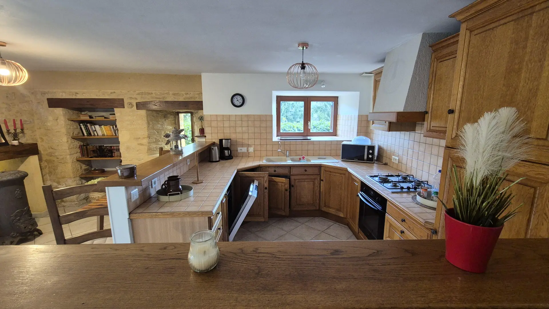 In Sarlat, rather in the countryside, vacation home with private, unenclosed garden, situated on the heights, approx. 800 m from the medieval town.you'll find all the comforts you need for a great vacation.large terrace with garden furniture and barbecue.open garden with 1 swing.private parking for 2 cars.1 st Supermarketsupermarket 3 km away.Market, bars and restaurants in town center 800 m away.Cycle path 4 km away: bring your bikes! Municipal swimming pool 4 km away.Hiking trails 1 km away.Garden level: large living room with open-plan kitchen. 1 laundry room, 1 WC.1st floor: 3 bedrooms (2 double beds 160 and 2 single beds 2x90).1 bathroom with shower - 1 separate WC.Completely new bedding.