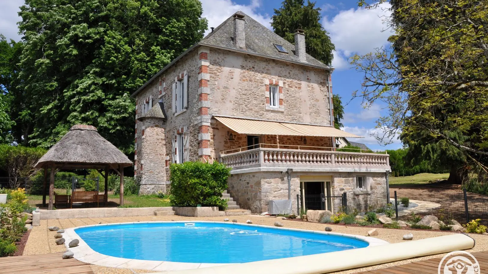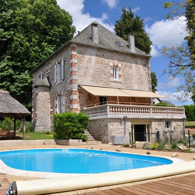 A characterful stone family home built in 1905 and recently restored with great care; surrounded by 3700 m2 of private parkland, planted with trees and enclosed. Ideal for vacations with family or friends, the house is designed to comfortably accommodate 10 people. A beautiful 40 m2 terrace overlooks a landscaped relaxation area with a heated, secure swimming pool. For cooler weather, there's a second terrace in the shade of lime trees and garden furniture under a thatched hut. The 1st floor has three bedrooms, 2 with en-suite shower rooms, a bathroom and WC. On the 2nd floor, two attic bedrooms, WC and bathroom and laundry room. Internet/WiFi access is available throughout the house. 50 TV channels on your tablets with a simple App. The gîte is located in a village 9 km from Tulle and 35 km from Brive La Gaillarde. The house is surrounded ...