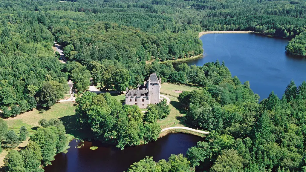 Château and Granges de Sédières ? Etang de la Prade - Forêt domaniale de Sédières ? Chauzeix ? Bourg de Clergoux (church).