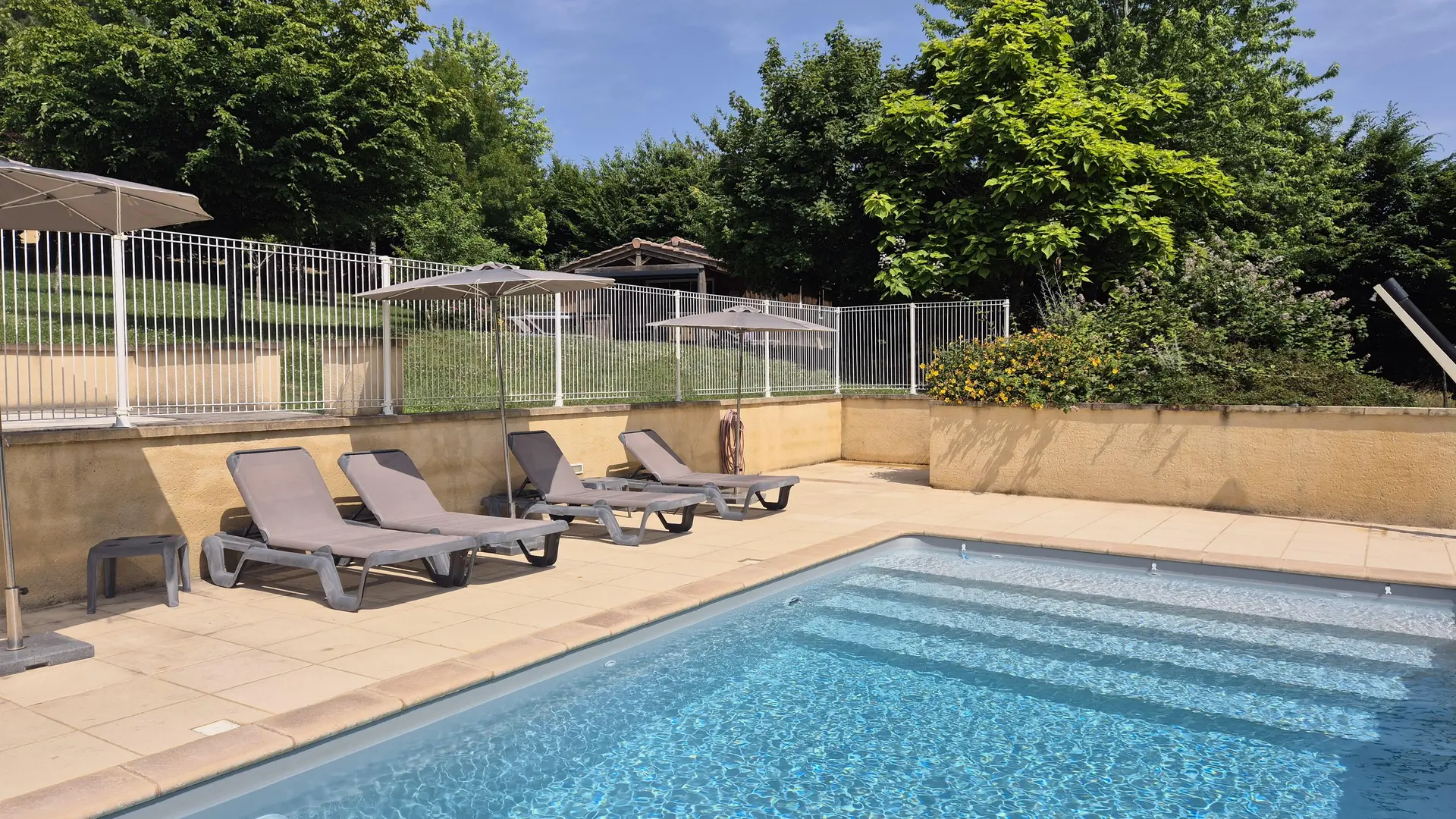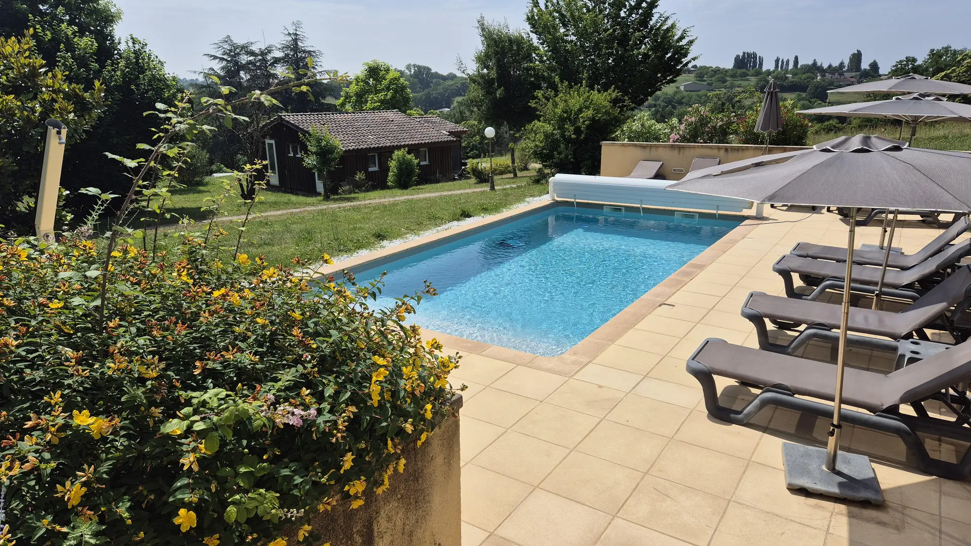 Pleasant hut on stilts, located in the countryside, in a private domain with fenced swimming pool to be shared between 3 lodgings (8 x 4 m, depth 1.50 flat bottom), salt filtration and heated spa: 2 waterfalls, music, 5 seats, 1 reclining place, 62 massage jets, 2 filtration systems, LED lights.