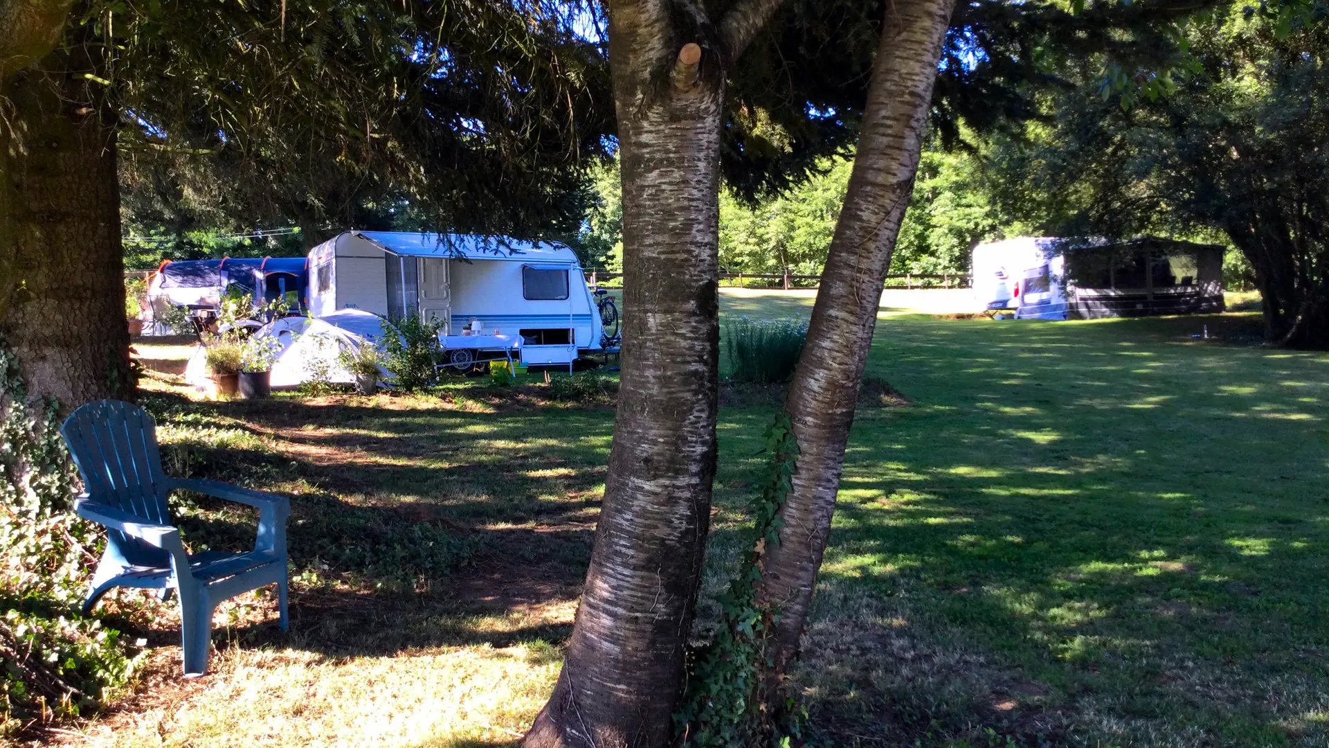 Domaine de la Plantade is a small farm campsite set in a 20-hectare estate where our horses and sheep graze. The hilly terrain offers a varied landscape of meadows and streams. It is freely accessible to camping guests. We have 6 spacious pitches, in the shade, half-shade or sun, depending on your preference. We rent a fully-furnished tent with two comfortable beds and everything you need for a pleasant camping stay, including linen.