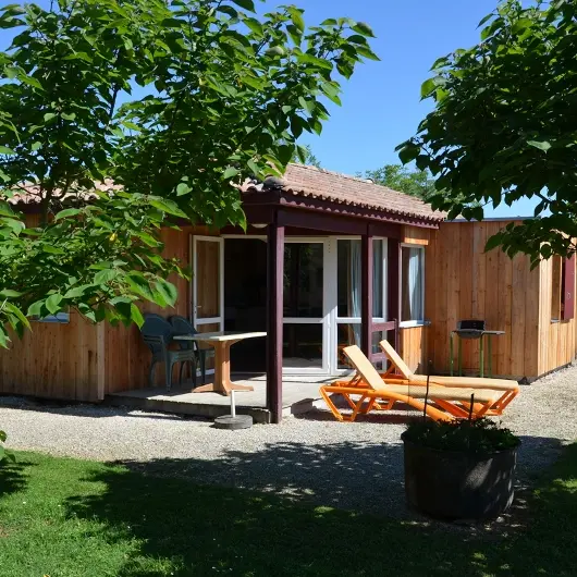CHALET LE CHENE VERT is a single-storey rental with a covered terrace and free access to the private shared and fenced swimming pool open from 05/04 - (14 m x 7 m, depth: flat bottom 1.35 m)