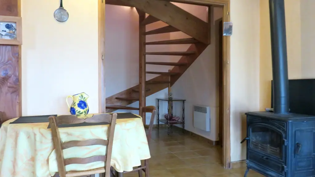 This vacation rental, located 9 km from Egletons, a small shopping town renowned for its public works schools, has been carefully renovated and enhanced with a beautiful veranda, giving it great appeal whatever the season. The ground floor comprises a comfortable living room, warmed by a wood-burning stove (wood supplied), a well-equipped semi-open kitchen (dishwasher, washing machine, mini-oven, fridge) and dining area. On the 1st floor, under the roof, are 2 bedrooms (1 bed 140, 1 bed 120 and 2 beds 90) and a bathroom/WC with bathtub. The whole is simple, pleasant and very functional. We're in the aptly named village of Péret-Bel-Air, which is sure to deliver on its promise of green vacations in the heart of the Millevaches Regional Nature Park.