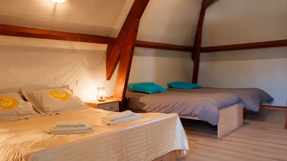 On the border of Périgord and Limousin, 5 minutes from Pompadour, we welcome you to our house near the cattle farm and fruit and vegetable store. We offer a suite occupying the entire first floor of the house, with en-suite shower room and separate toilet.
