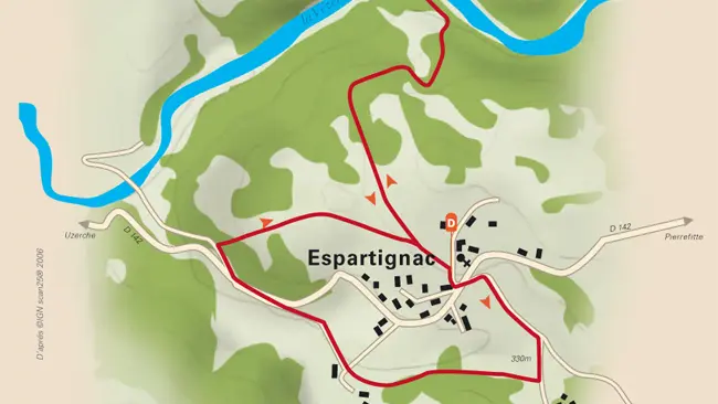 called "Le Transcailladou", you will go back in time to the site "Le Dolmen". The remains of the castle mound of the Abbey Castle will be visible to you and the small path will naturally lead you to the House of the Wolf located on a rocky spur dominating the metal road in a meander of the Vézère.