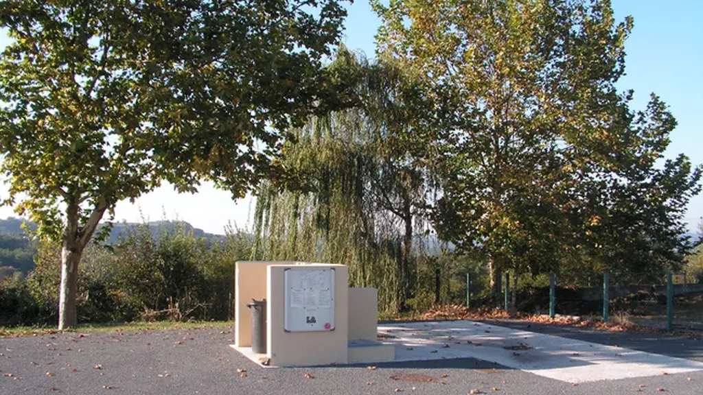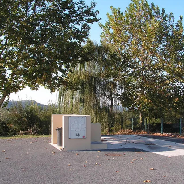 Service area located on route d'Ayen Bas, 300 m from town (follow signs) and close to communal workshops. Facilities: grey water discharge area; flushing system; toilet cassette discharge; Presto push-button type tap for cassette flushing, marked "cassette flushing"; Presto push-button type tap with thread for water filling, marked "drinking water"; rubbish container. Free of charge.