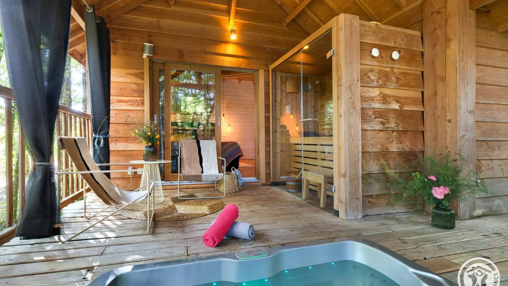 Nestled in the heart of a private wood in Saint-Mexant, Corrèze, the Cyprès si Haut tree house offers an unforgettable experience. Accessed by an elegant spiral staircase, this 80 m² cabin, including a large terrace, combines natural charm with top-of-the-range amenities. Treat yourself to a moment of well-being in the private spa and sauna, located on this out-of-sight terrace. Inside, comfort and modernity meet: a master suite, a mezzanine for the children, a fully equipped kitchen, a bioethanol stove, air conditioning, a connected speaker, a TV and Wi-Fi. Numerous activities await you: forest walks, fishing, canoeing, horseback riding, and discovering the Château de Sédières and the charming villages of Correze. Whether you're looking for an unusual, romantic or family night out, Cyprès si Haut is a haven of peace where ...