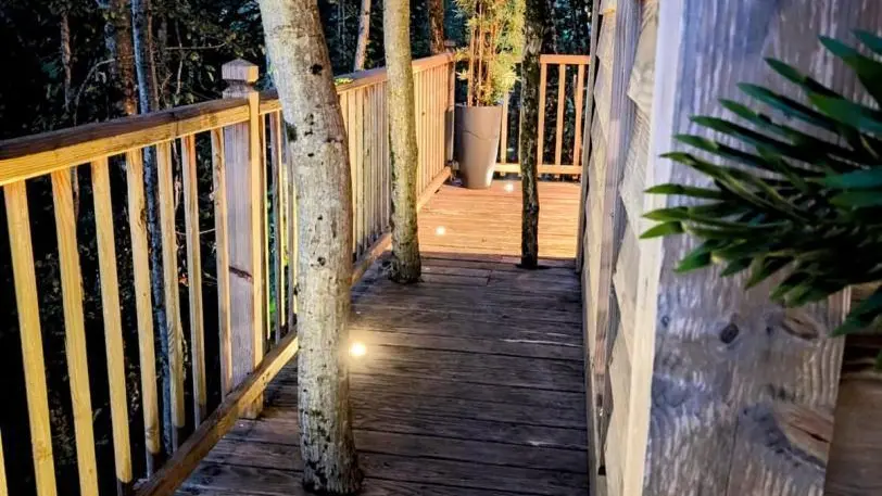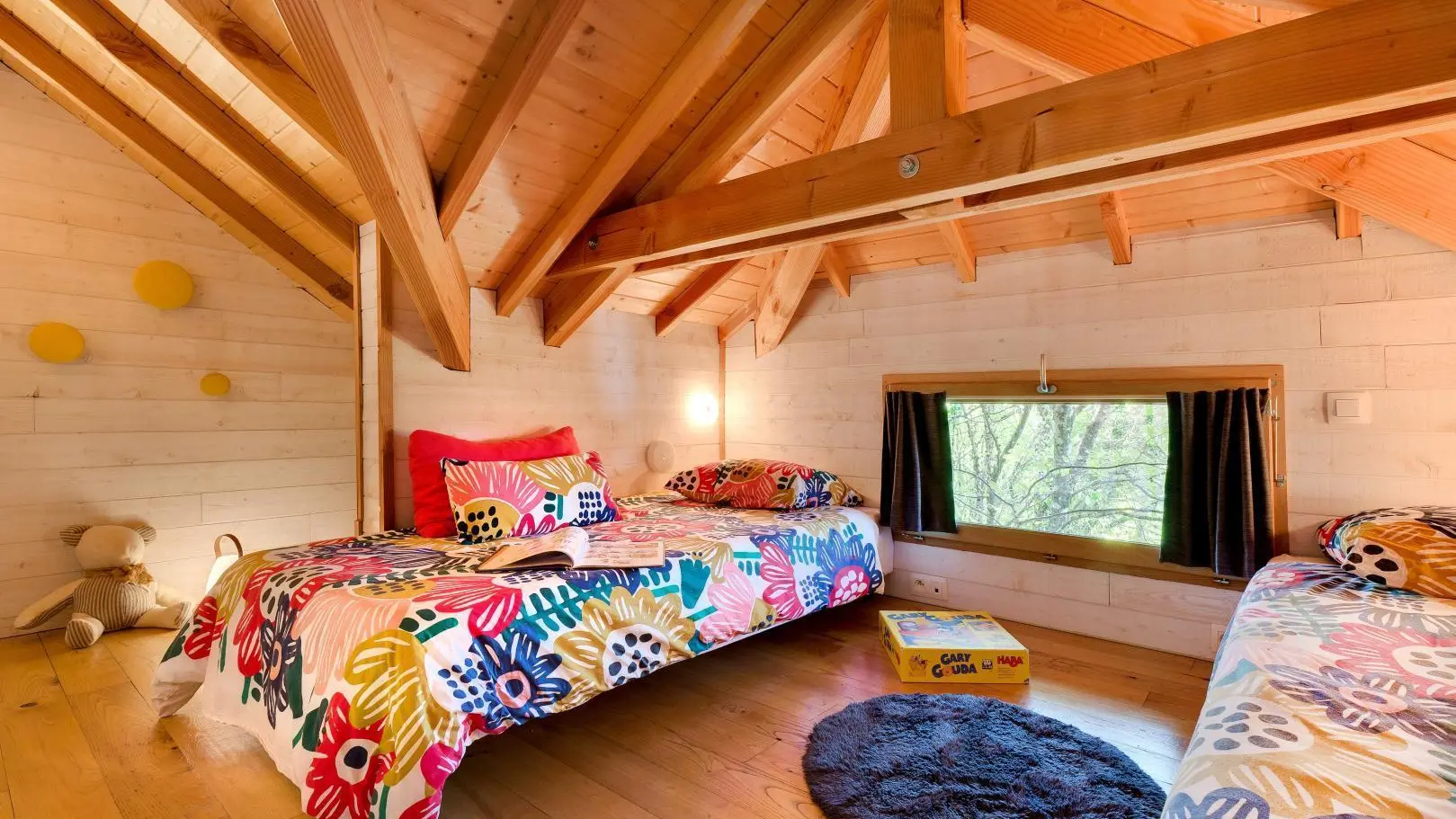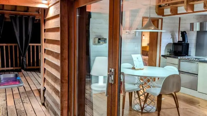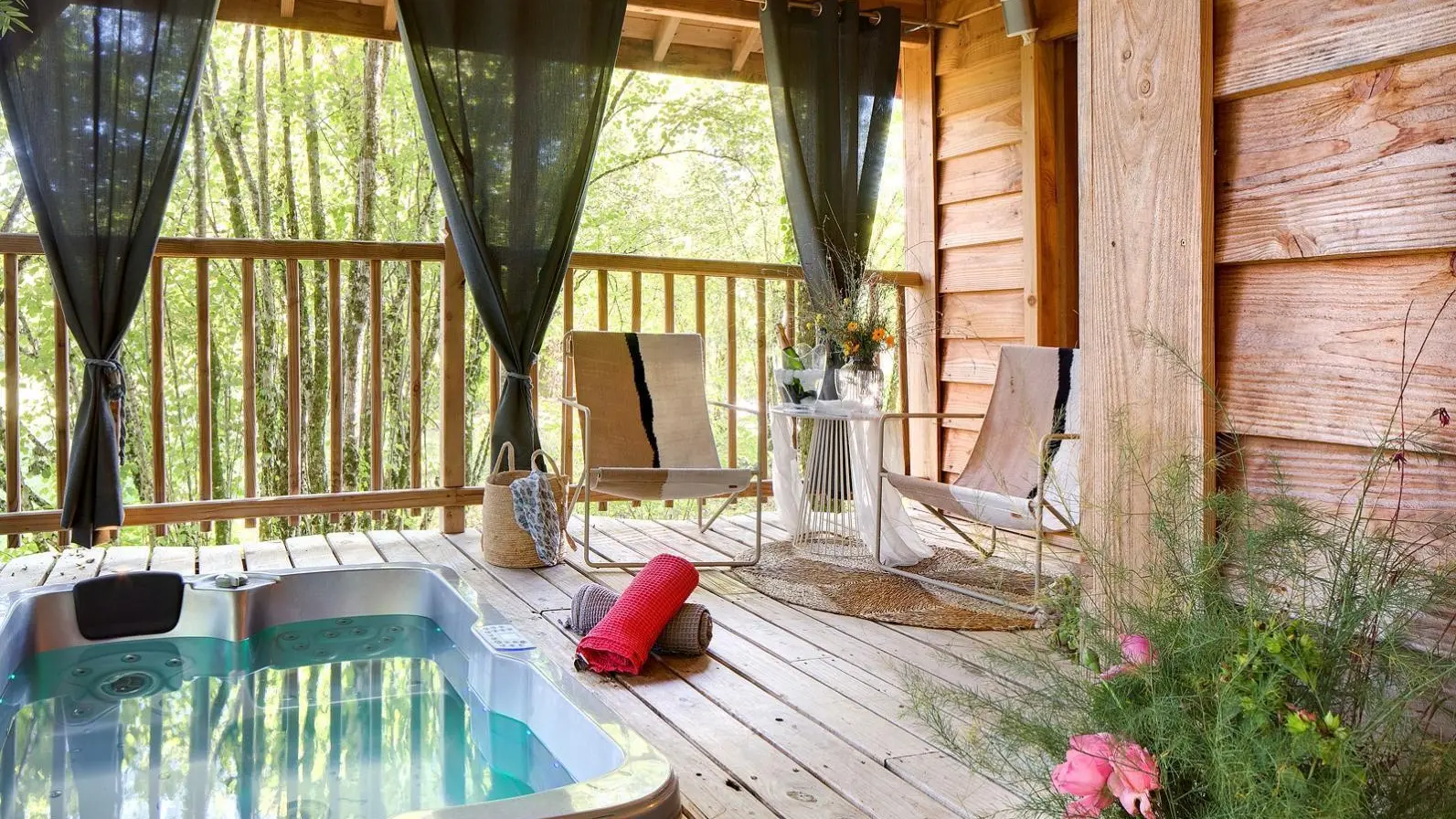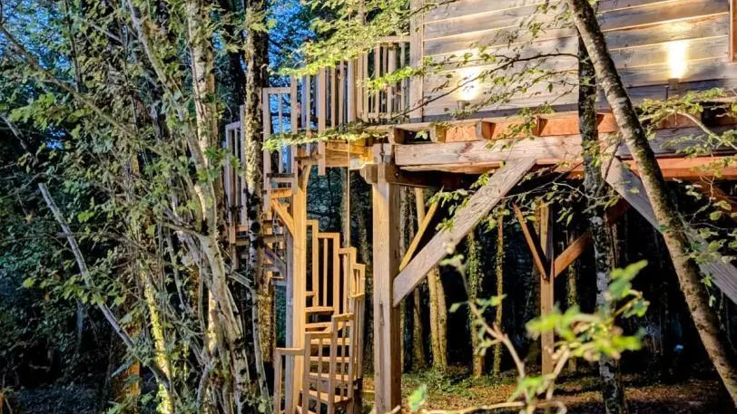 Nestled in the heart of a private wood in Saint-Mexant, Corrèze, the Cyprès si Haut tree house offers an unforgettable experience. Accessed by an elegant spiral staircase, this 80 m² cabin, including a large terrace, combines natural charm with top-of-the-range amenities. Treat yourself to a moment of well-being in the private spa and sauna, located on this out-of-sight terrace. Inside, comfort and modernity meet: a master suite, a mezzanine for the children, a fully equipped kitchen, a bioethanol stove, air conditioning, a connected speaker, a TV and Wi-Fi. Numerous activities await you: forest walks, fishing, canoeing, horseback riding, and discovering the Château de Sédières and the charming villages of Correze. Whether you're looking for an unusual, romantic or family night out, Cyprès si Haut is a haven of peace where ...