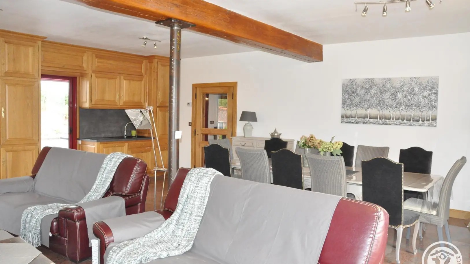 Large house in red "brasier" stone, on land overlooking the valley, sleeps 12, with magnificent views. Swimming pool with access from the terrace. The house is equipped with all modern conveniences, wifi throughout. Large living room, small reading room. Outside, a sheltered relaxation area allows you to enjoy meals sheltered from the elements, and an enclosed area can accommodate an extra bed. This house is ideal for getting together with family or friends.