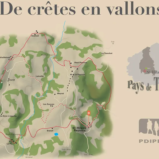You'll make your way through the Couze valley and over the ridges that dominate our commune... At Puy de Leyrat, just before the village of Vieillefond, panoramic views of the lower Corrèze. On your route: two old watermills, at Bourguet and Saquet.