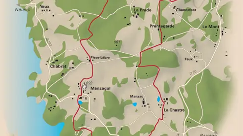 the lake, everything here tells you about the work of men. The orientation table of Manzagol gives a view of the landscape and its subtle reading. Back in the village, the "rue du tacot", which crosses it, was in the 19th century teeming with activities installed on both sides of the road.