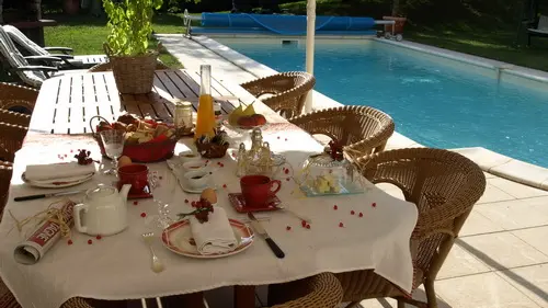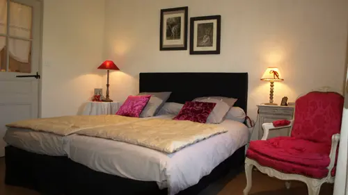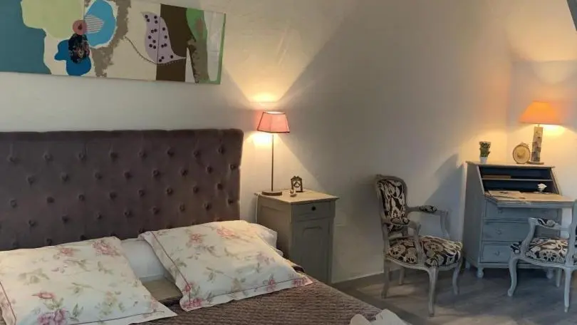 Gérard and Michelle welcome you to their family home, an old restored barn just a few minutes from the center of Brive, 1 large 3-bedroom family suite located in a detached house on the hosts' property, decorated with taste, refinement and charm. Park, covered swimming pool, private terrace, living room with microwave, kettle, fridge, crockery and cutlery