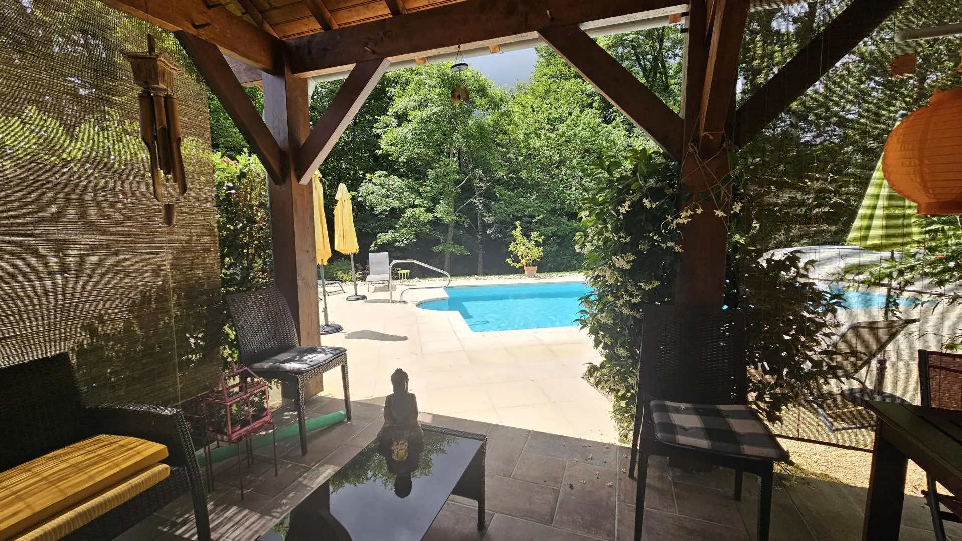 at "Du côté de Brignac", you'll find 2 cosy guest rooms and a separate bedroom with en-suite shower room and toilet, set in soothing surroundings. Your hostess, Michèle, will serve you breakfast on the sunny terrace, facing the swimming pool, which will delight you in the hottest hours of the day. This bucolic setting lends itself equally well to rest and walks in the Corrèze and Dordogne regions.