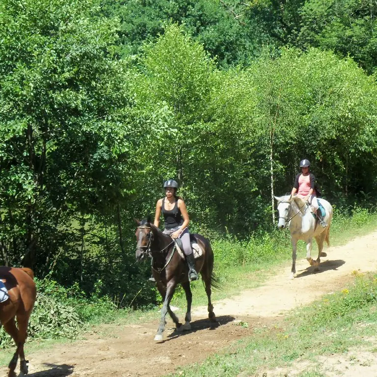 Located at La Vigne in the commune of Sainte Fortunade, near Tulle, in a green setting in the Corrèze. The riding center is a certified Ecole Française d'Equitation Cheval et Poney, affiliated to the French Federation and approved by the French Ministry of Youth and Sports. We welcome children from the age of three for group lessons or hand-on rides. Our teaching is adapted to every age and every level of rider, from child to adult, according to each individual's motivations: from leisure to competition...always in search of FUN! The team is made up of qualified instructors (BEES 2, BEES 1, BPJEPS) who supervise and lead the club's activities.