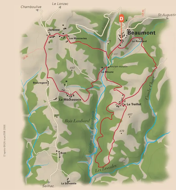 Following the GR 46, which offers views of the Monédières and the Vallée de la Vimbelle, you will pass through the pretty hamlets of the commune on dirt tracks, mostly in the undergrowth, and up several steep inclines, near an old mill and crosses?