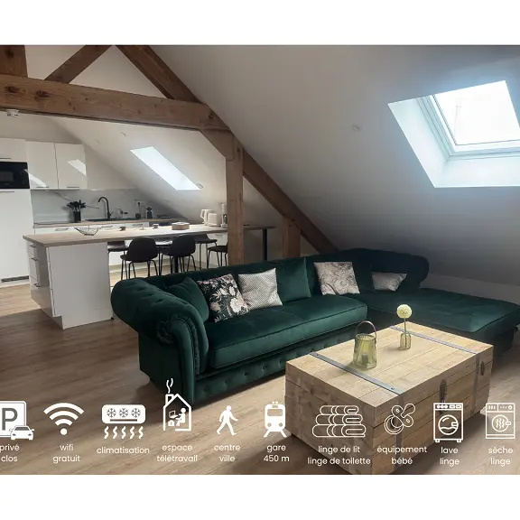 Le Firmin Gaillard is an exceptional apartment in the heart of Brive, nestled in a character building with authentic local architecture; you'll discover the charm of the old sublimated by a meticulous renovation carried out in 2025. It can accommodate up to 4 people.