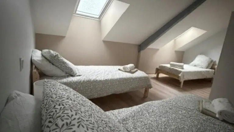 Upstairs: 4 bedrooms (3 with 140cm beds and one with 3 90cm beds), 2 shower rooms and 1 toilet.
