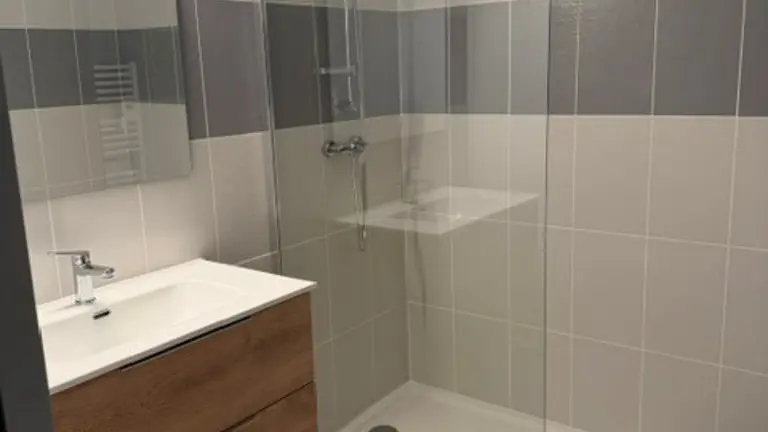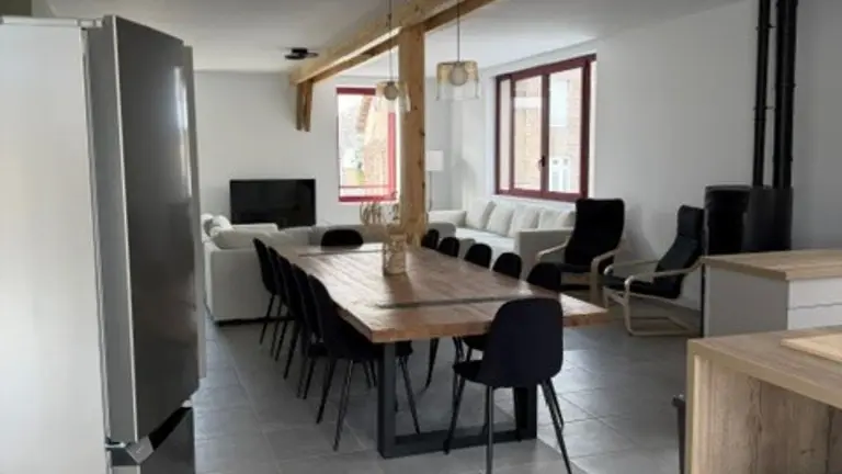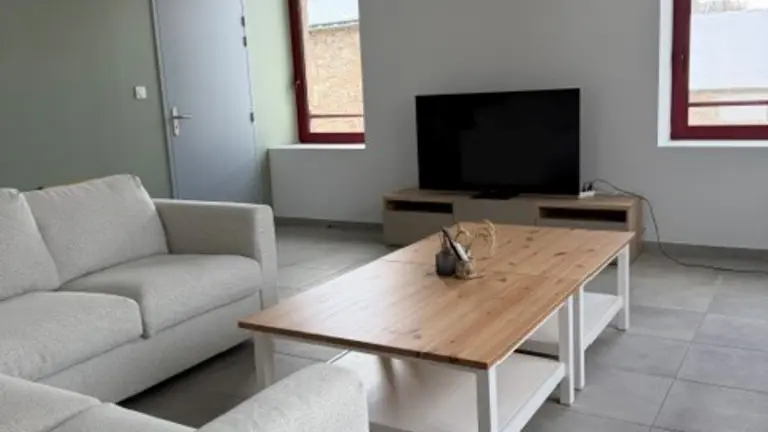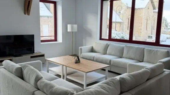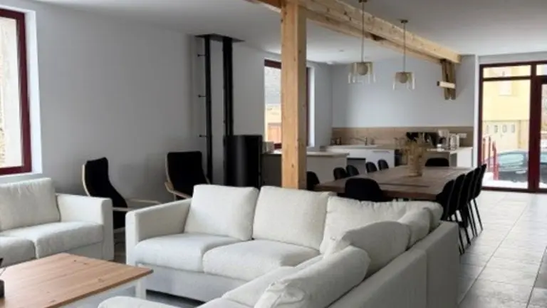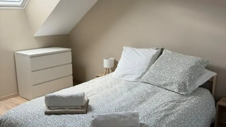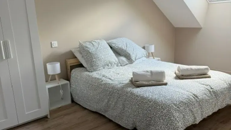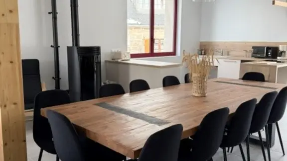 On the first floor, 1 bedroom accessible to people with reduced mobility with shower room and WC, a very attractive living area with fully-equipped kitchen (dishwasher, oven, fridge/freezer, etc.) opening onto living room, pellet stove, TV and WIFI. Laundry room with washing machine and dryer, iron and ironing board. Small checkroom at the entrance to the property.