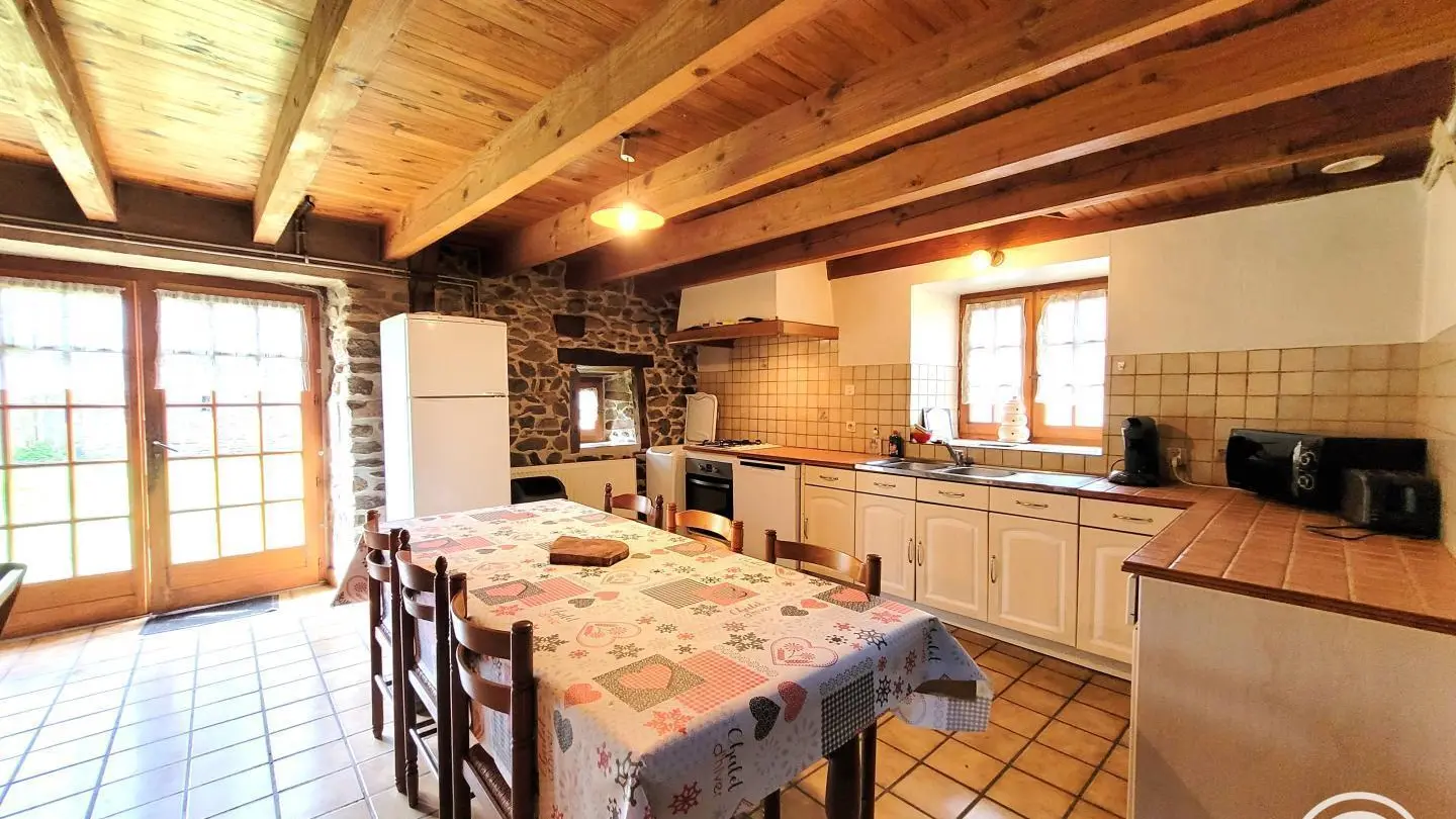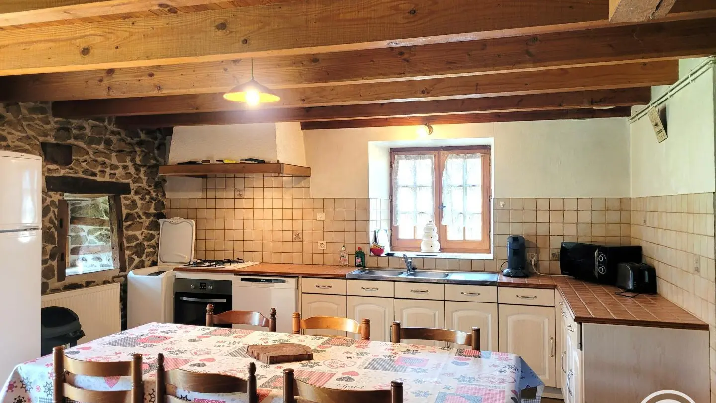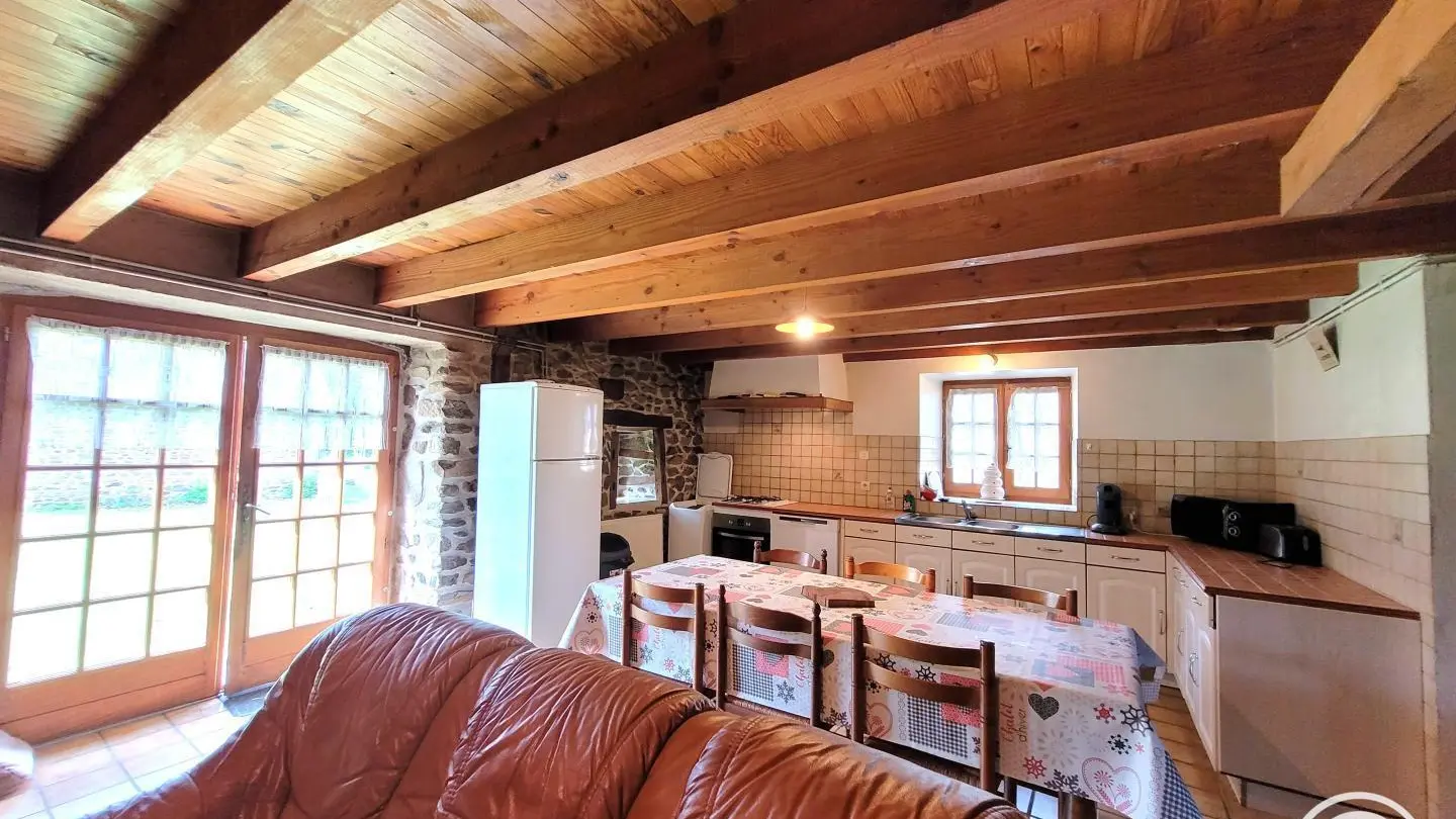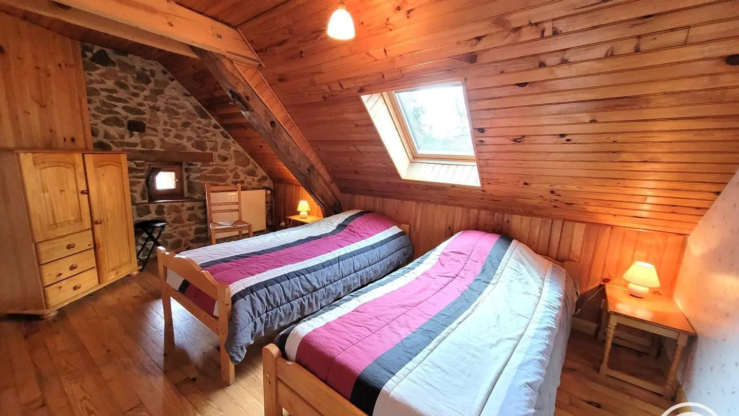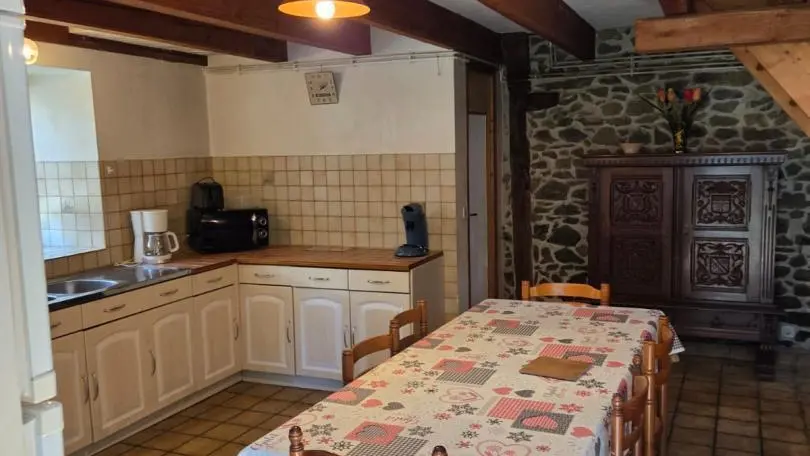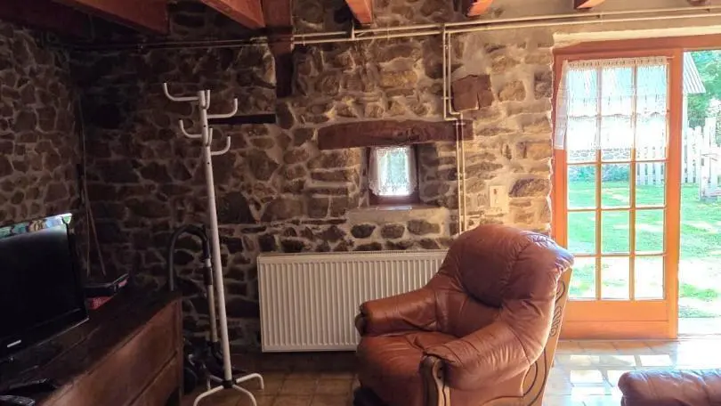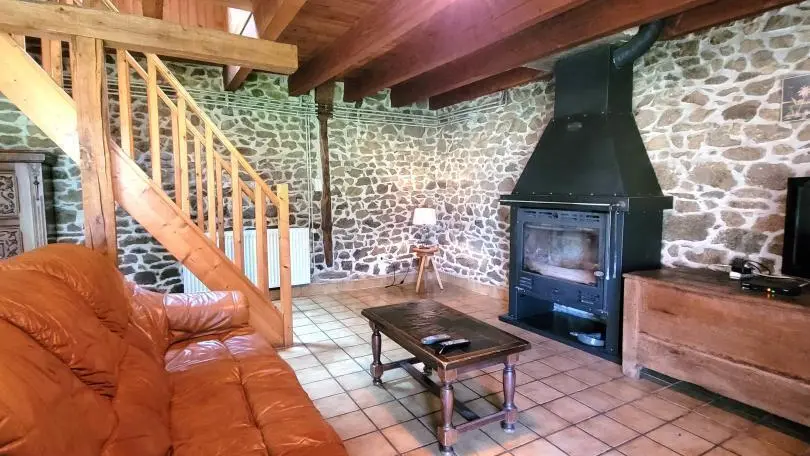 At the end of the road, this old sheepfold, beautifully renovated with exposed stone and wood, will delight you. Situated in the heart of a landscape of woods and wild paths that will guide you to a charming little pond, where you can meet the mushrooms. Enjoy the calm and beauty of the Plateau de Millevaches. 300 m from town, altitude 750 m. 50? per stere of wood in proportion to consumption.