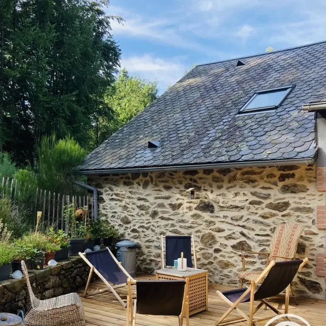 This gîte combines authenticity, comfort and relaxation. The perfect place for families to recharge their batteries in an exceptional natural setting. Situated in the middle of the forest, this peaceful gîte in Lafage-sur-Sombre is a haven of peace for lovers of nature and tranquillity. Ideal for vacations with family or friends, it can accommodate up to 4 people in the main accommodation, with an original option for teenagers: a 2-seater tent with real beds, set on a magnificent wooden terrace, perfect for an unusual night close to nature.