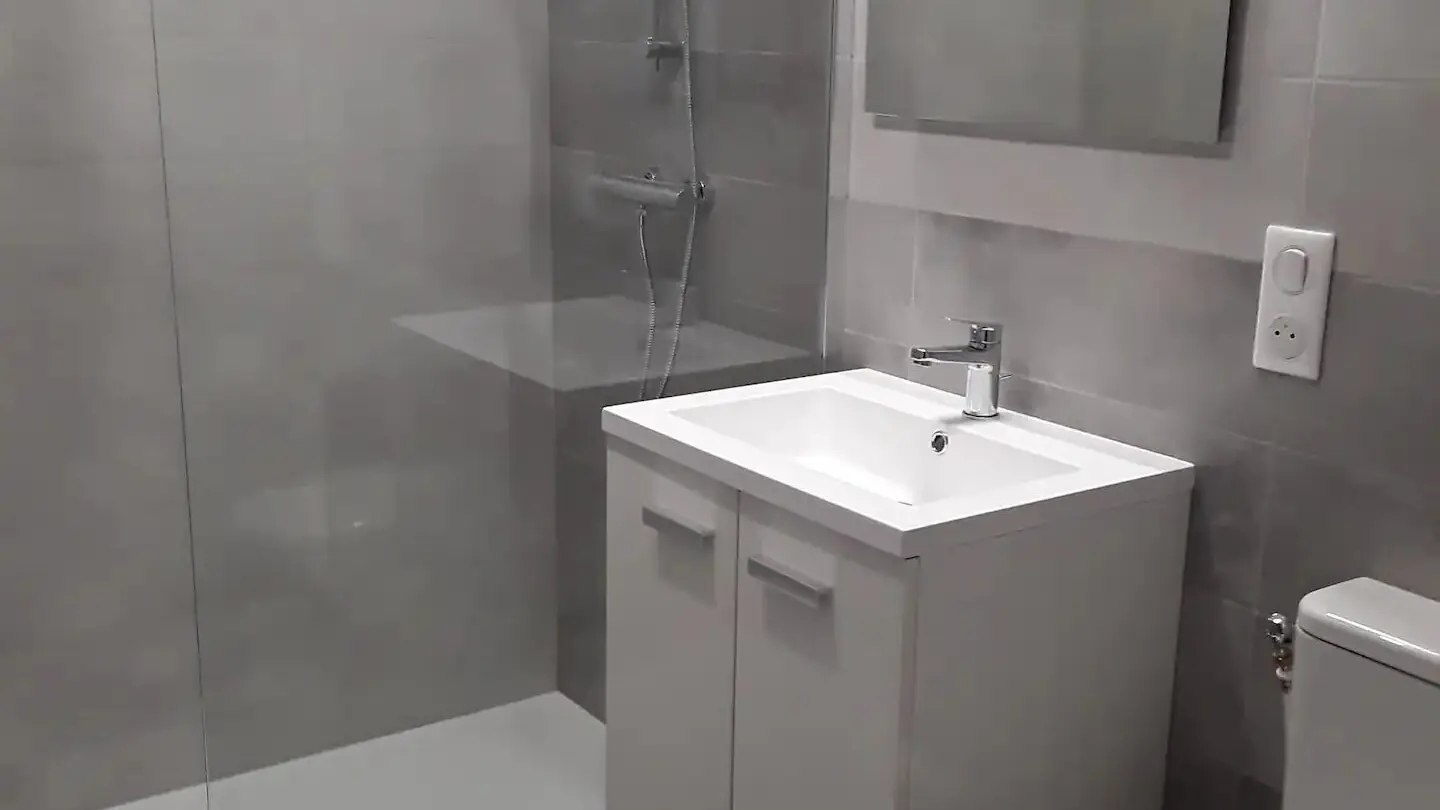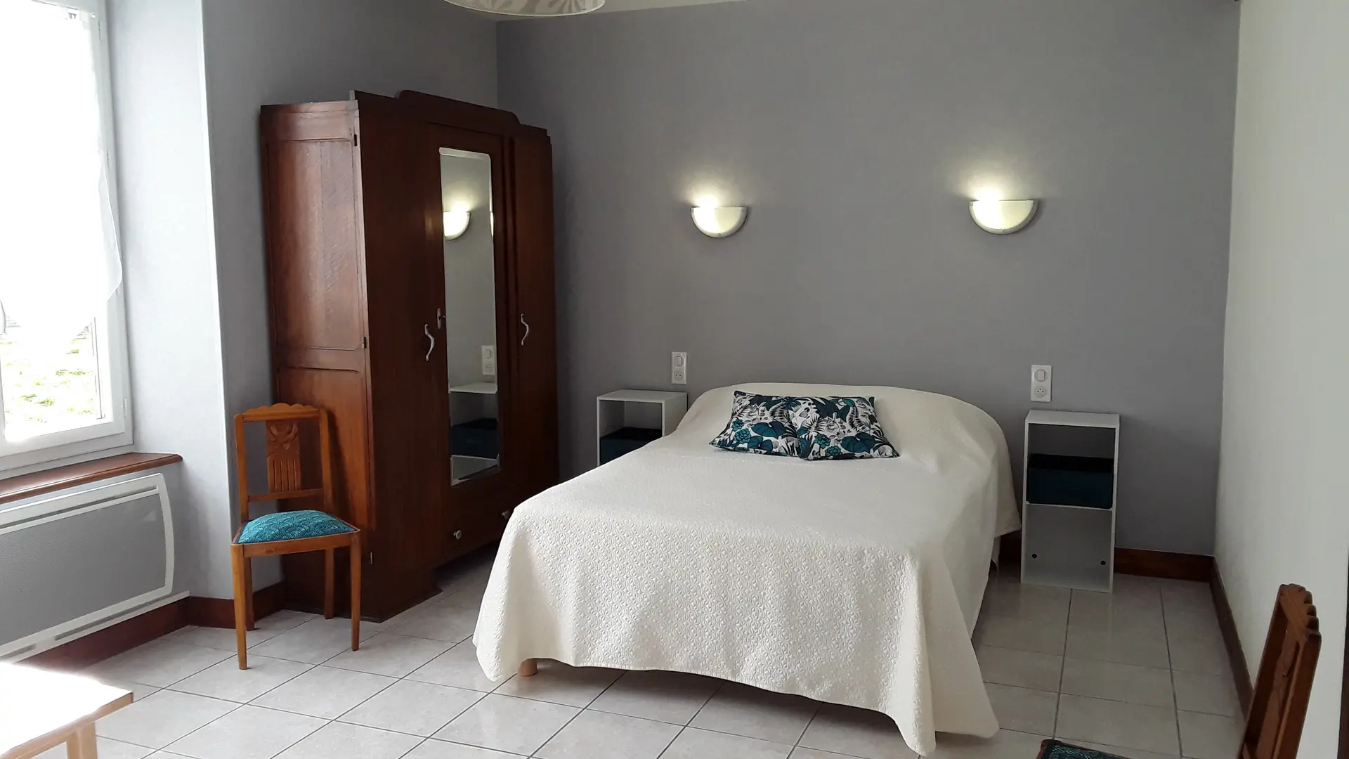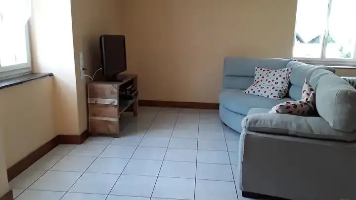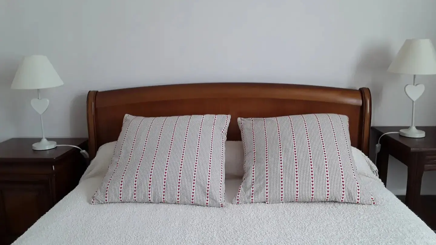 The accommodation consists of 2 beautiful bedrooms with, in one, 1 bed in 140 and the other 1 bed in 140 and a bed in 90, a shower-room with WC and a living room with kitchen (fridge, oven, vitroceramic plate, ?) and living room with fireplace, sofa, TV.