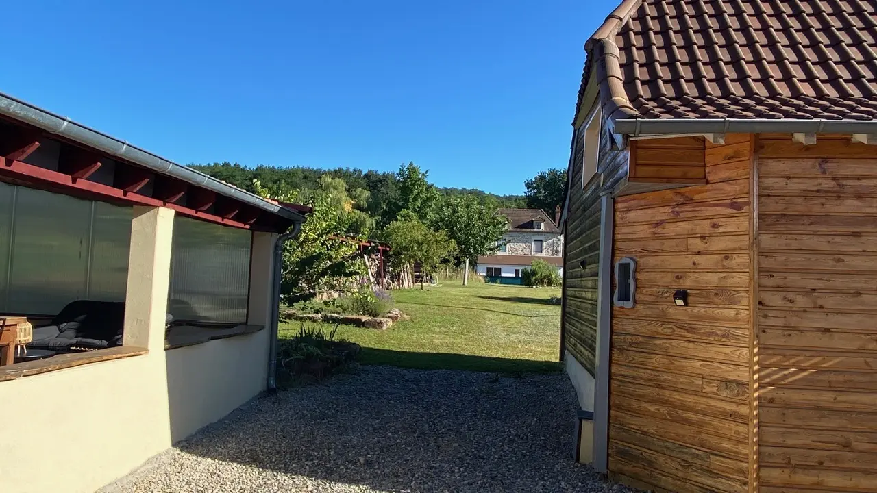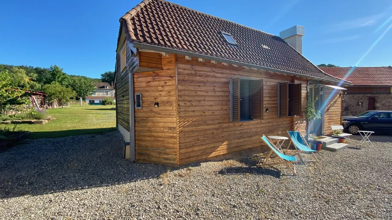 Charming restored chalet located on a rest and relaxation area near the Vézere river, at the crossroads of Corrèze, Dordogne and Lot, in the heart of Périgord Noir. a 4m diameter and 1.10 deep fenced swimming pool