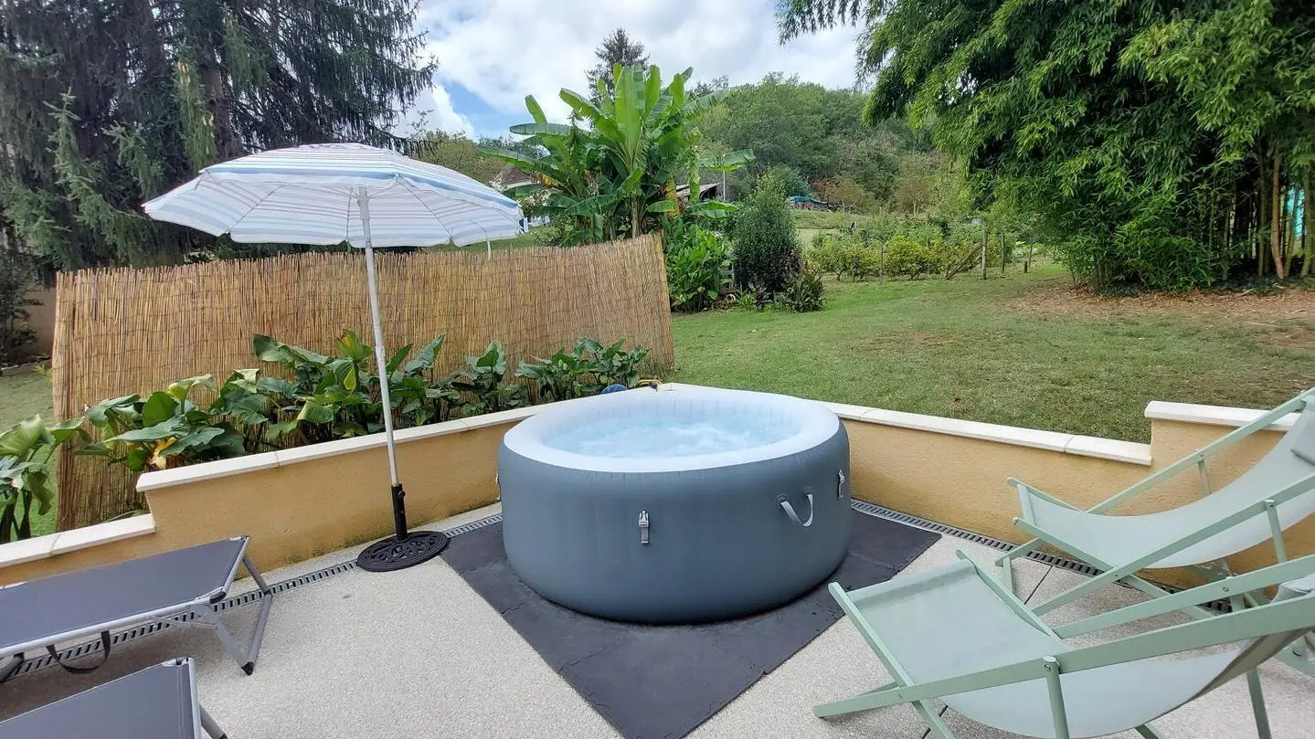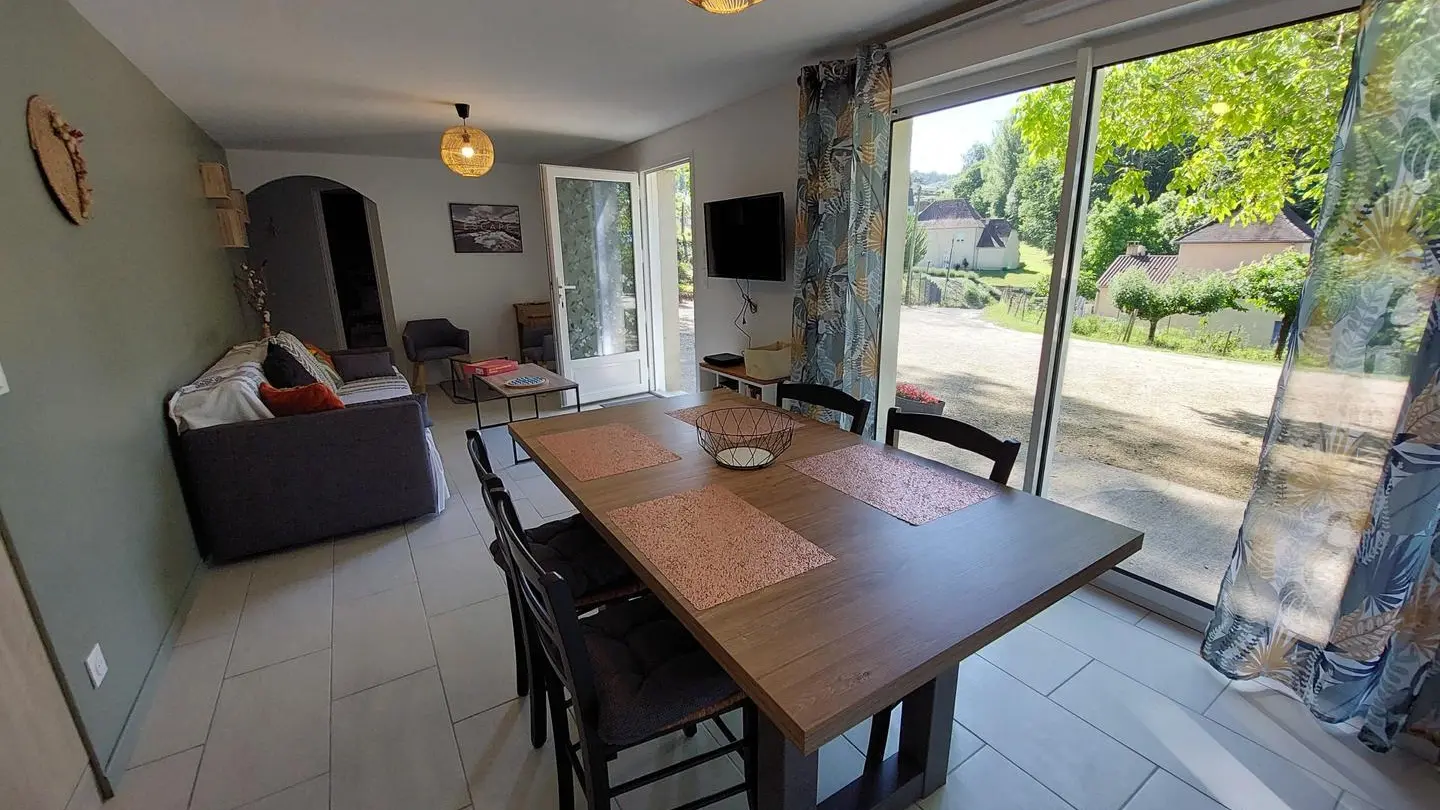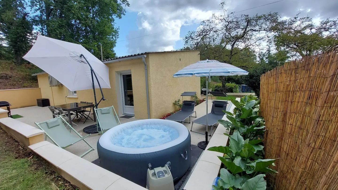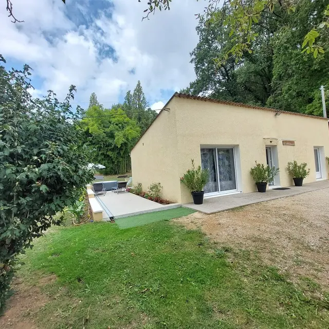 Just 1.5 km from the medieval town of Sarlat. You can get there on foot or by bike! And enjoy the calm and greenery that surrounds it, in this little house that has been tastefully refurbished with great care.And if the heat returns? The inflatable spa on the terrace will be there to cool you down, and the house is air-conditioned.single-storey, ideal for a family of 4 or 2 couples. Private terrace, garden furniture and barbecue.Large garden for your children.Shops, restaurants, street entertainment, town center: it's easy to get around by bike!.Heating included.Bed linen and towels provided: beds are made.On one level, with 1 living room and its fully-equipped kitchen - its storeroom.2 bedrooms: 1 bedroom with a 160cm bed and 1 bedroom with 2 90cm beds.1 shower room with shower - 1 WC.
