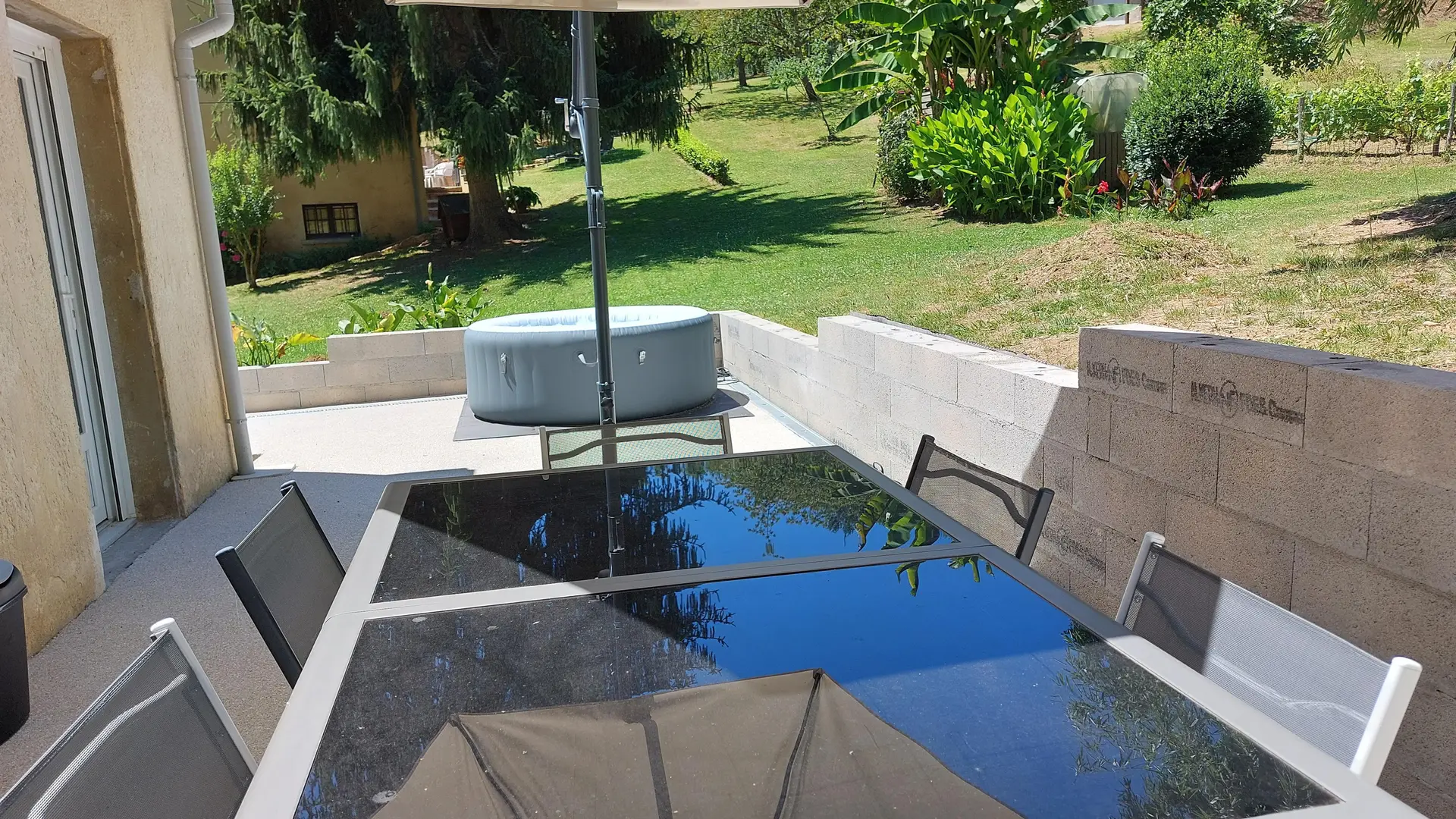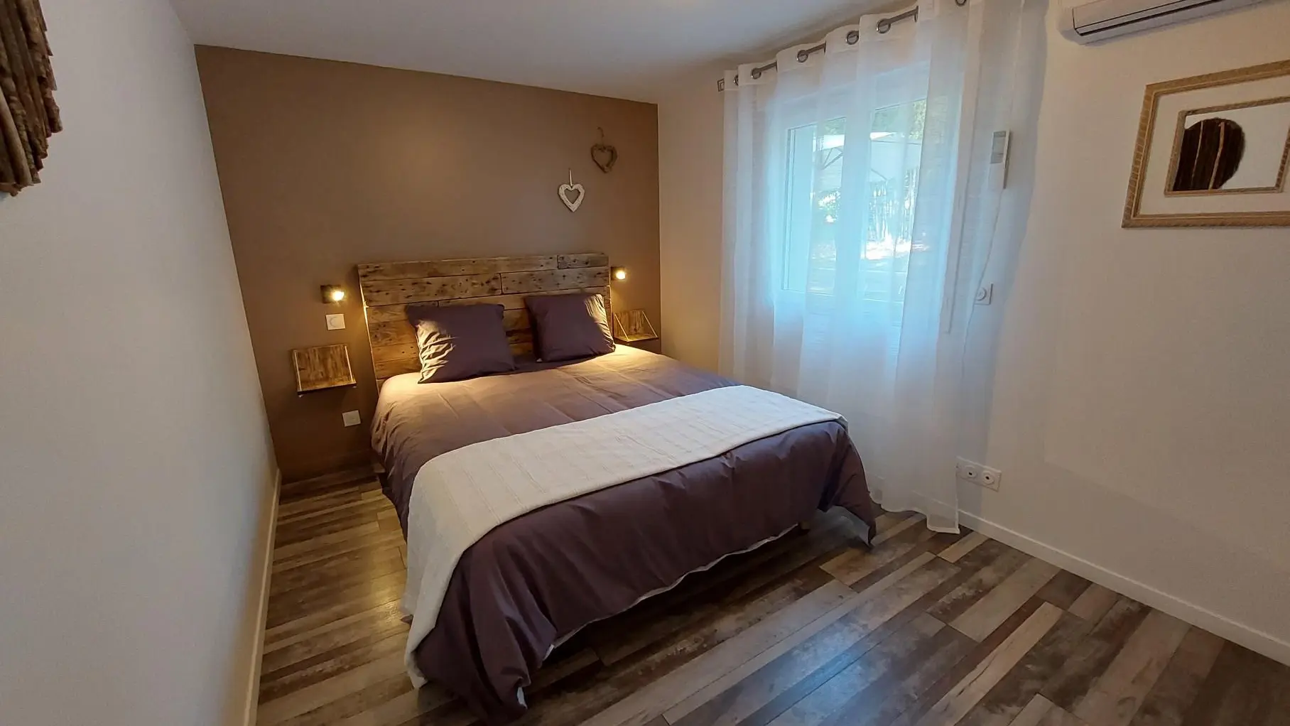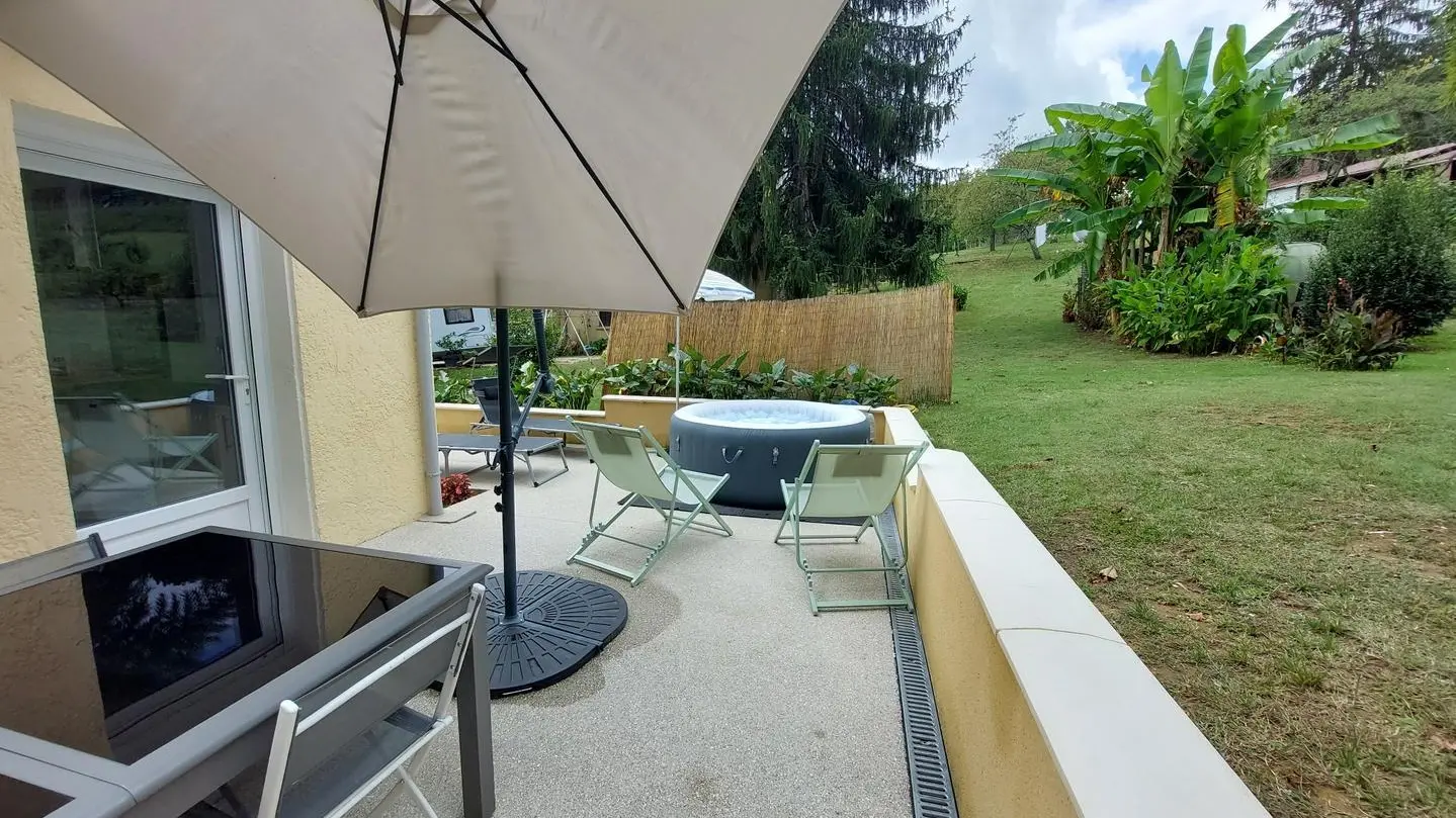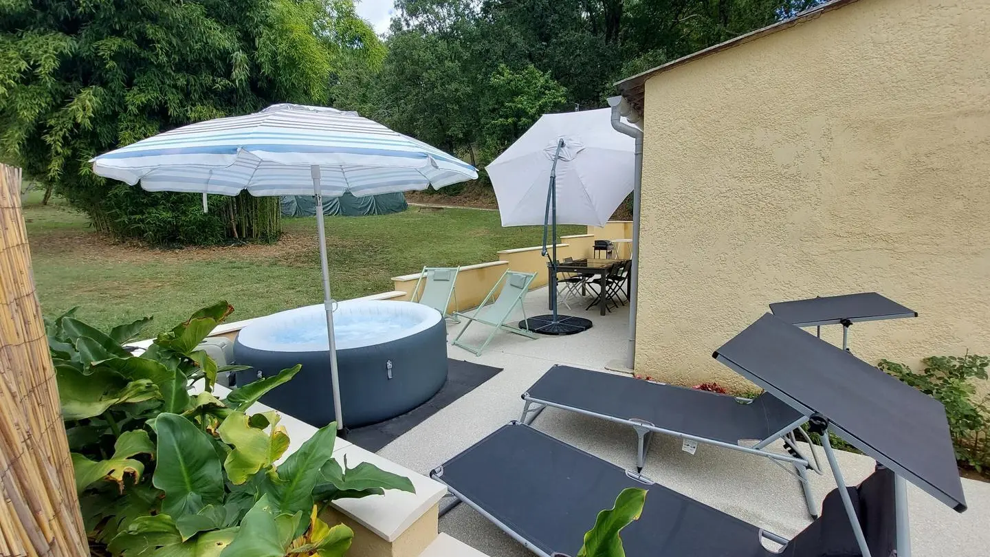 Just 1.5 km from the medieval town of Sarlat. You can get there on foot or by bike! And enjoy the calm and greenery that surrounds it, in this little house that has been tastefully refurbished with great care.And if the heat returns? The inflatable spa on the terrace will be there to cool you down, and the house is air-conditioned.single-storey, ideal for a family of 4 or 2 couples. Private terrace, garden furniture and barbecue.Large garden for your children.Shops, restaurants, street entertainment, town center: it's easy to get around by bike!.Heating included.Bed linen and towels provided: beds are made.On one level, with 1 living room and its fully-equipped kitchen - its storeroom.2 bedrooms: 1 bedroom with a 160cm bed and 1 bedroom with 2 90cm beds.1 shower room with shower - 1 WC.