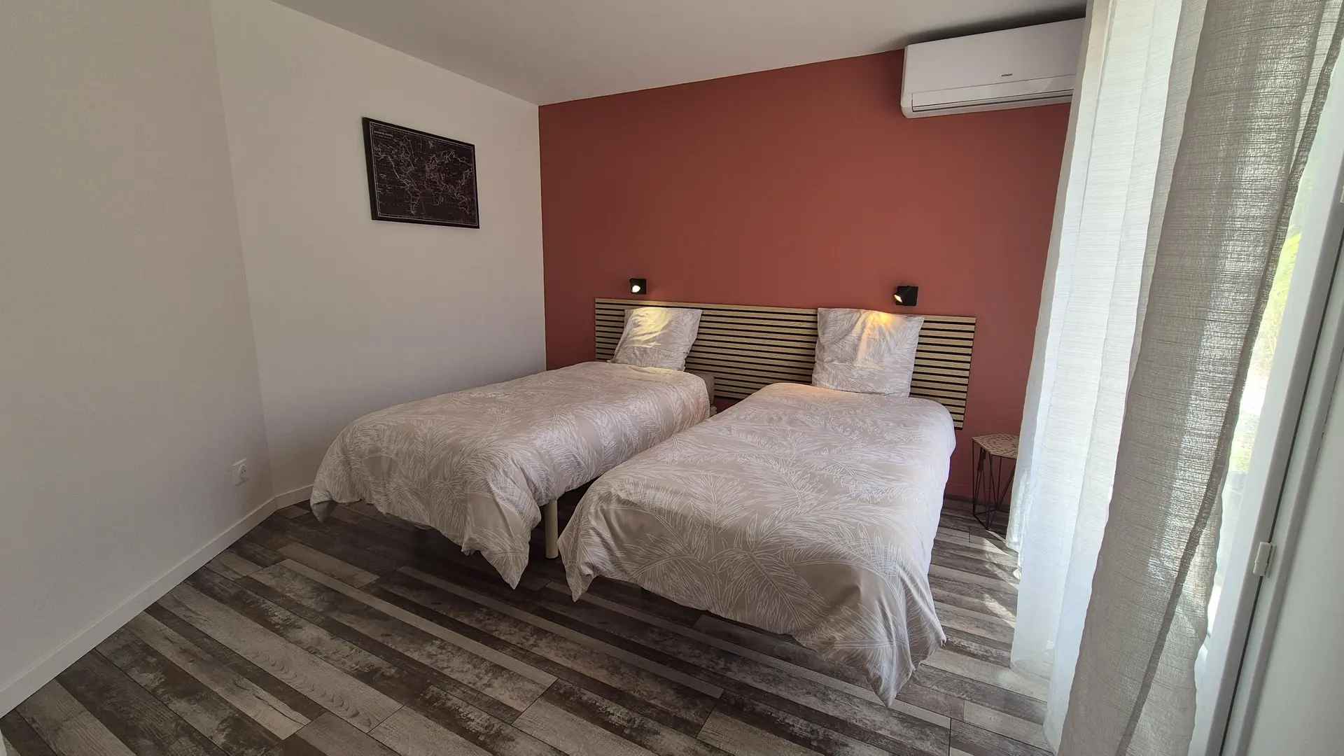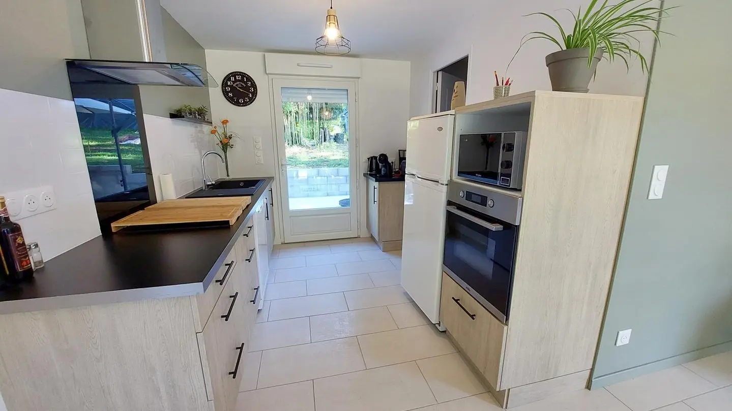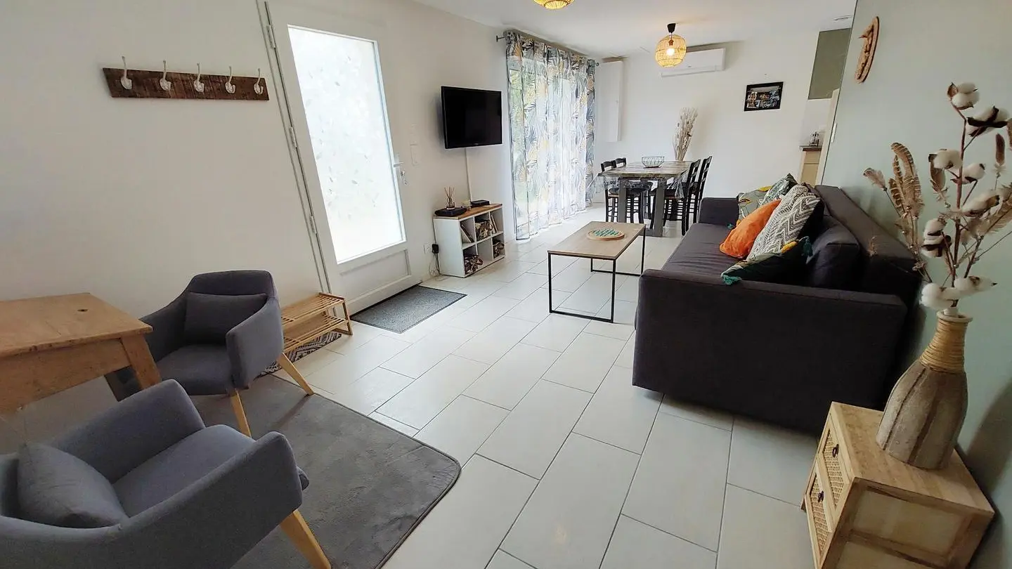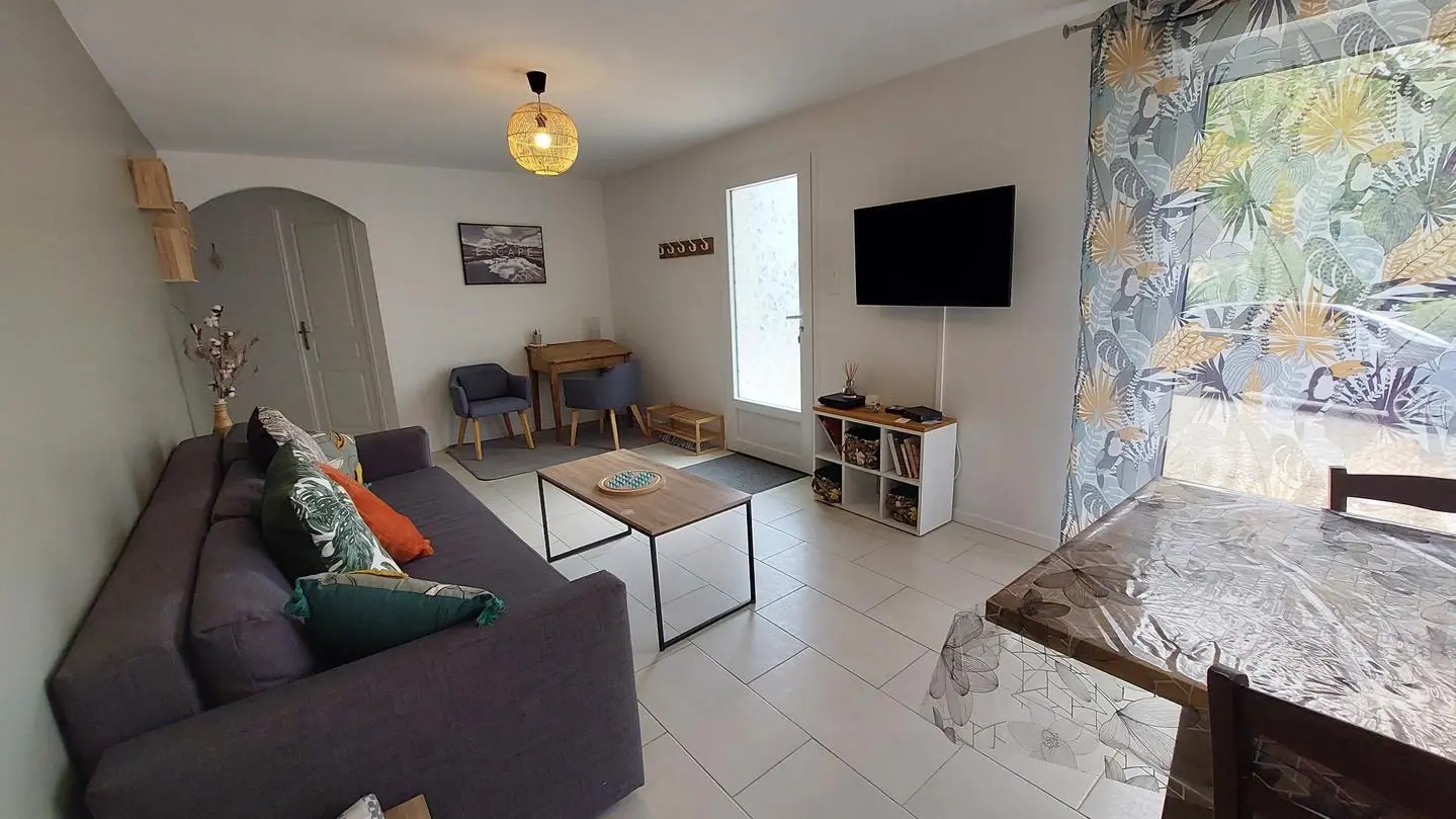 Just 1.5 km from the medieval town of Sarlat. You can get there on foot or by bike! And enjoy the calm and greenery that surrounds it, in this little house that has been tastefully refurbished with great care.And if the heat returns? The inflatable spa on the terrace will be there to cool you down, and the house is air-conditioned.single-storey, ideal for a family of 4 or 2 couples. Private terrace, garden furniture and barbecue.Large garden for your children.Shops, restaurants, street entertainment, town center: it's easy to get around by bike!.Heating included.Bed linen and towels provided: beds are made.On one level, with 1 living room and its fully-equipped kitchen - its storeroom.2 bedrooms: 1 bedroom with a 160cm bed and 1 bedroom with 2 90cm beds.1 shower room with shower - 1 WC.