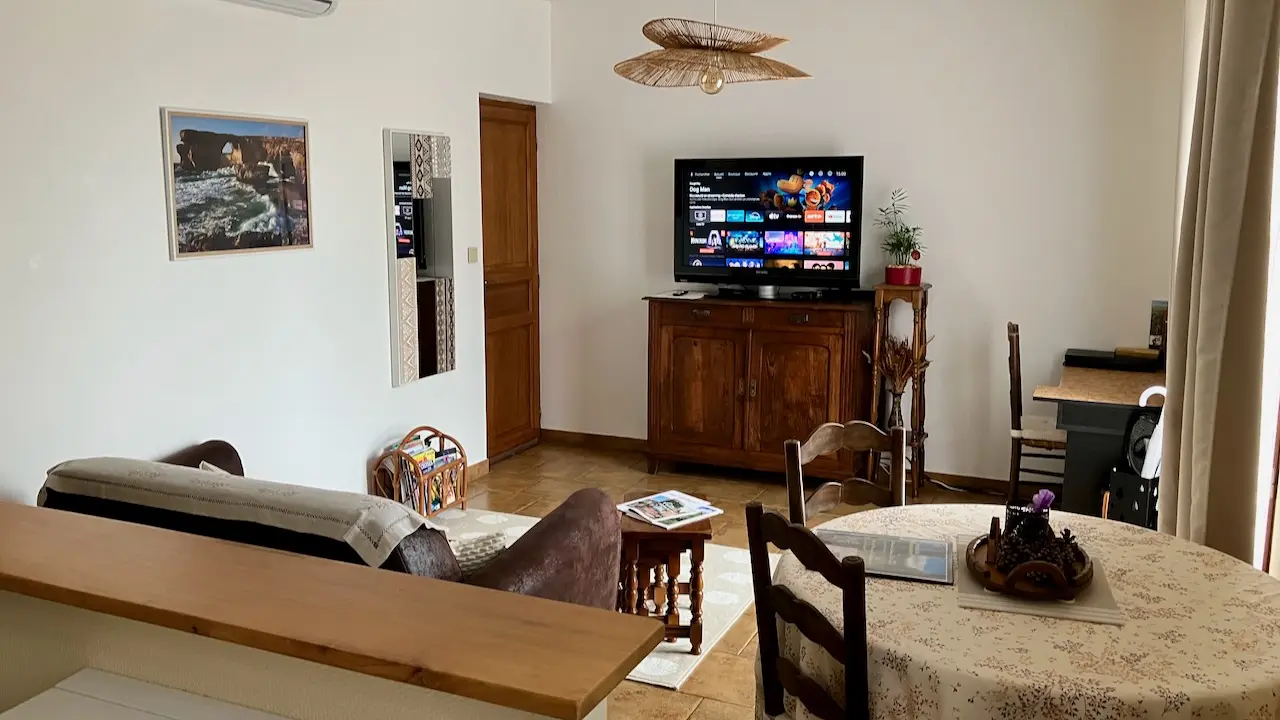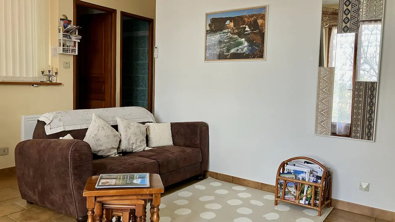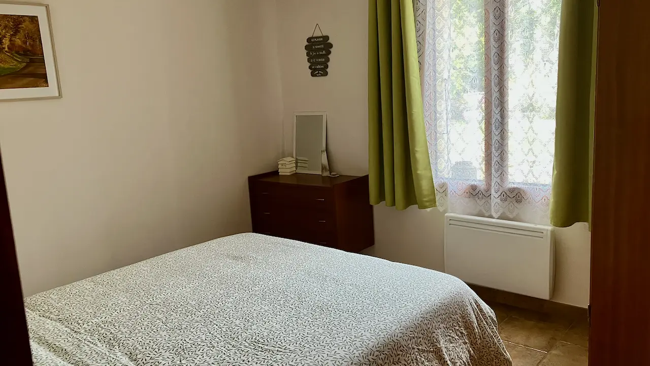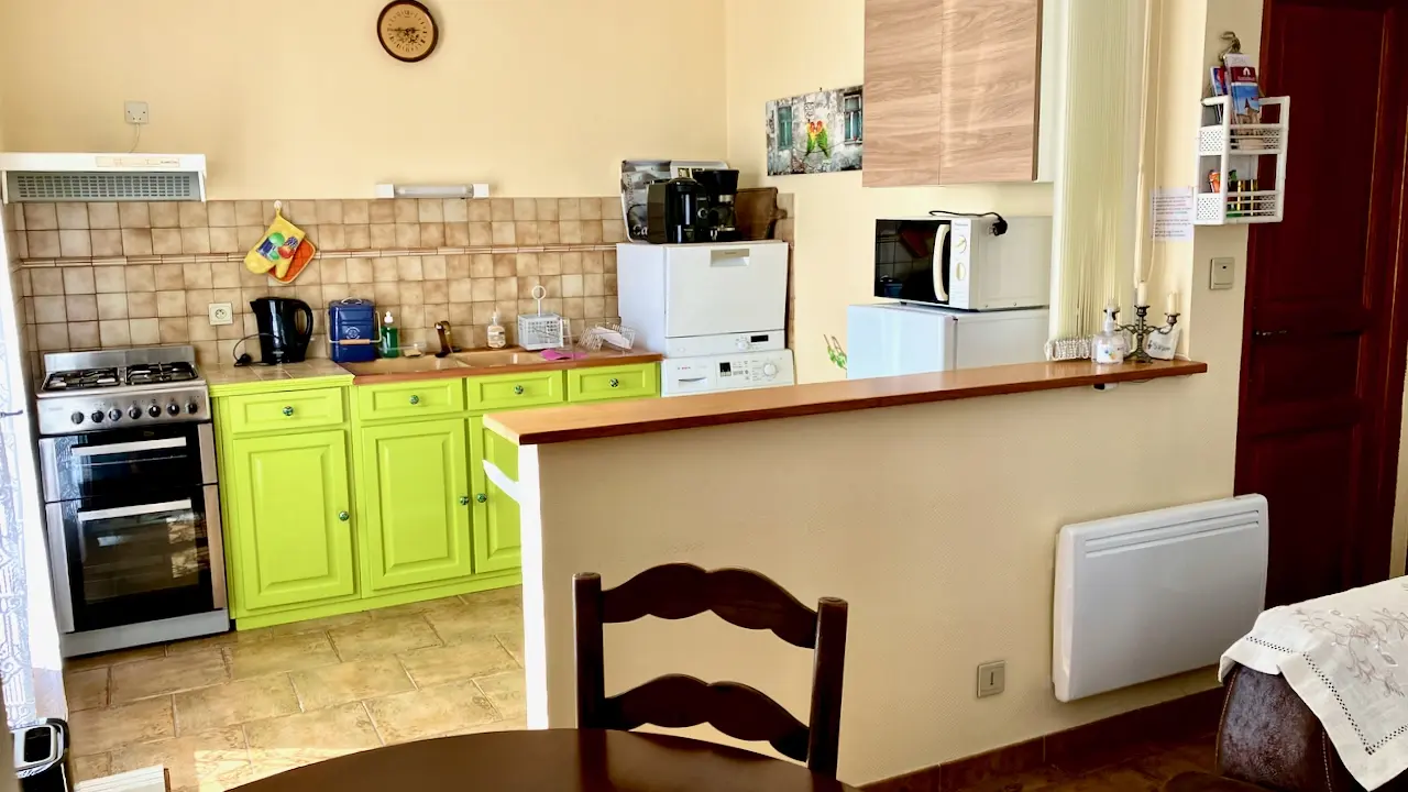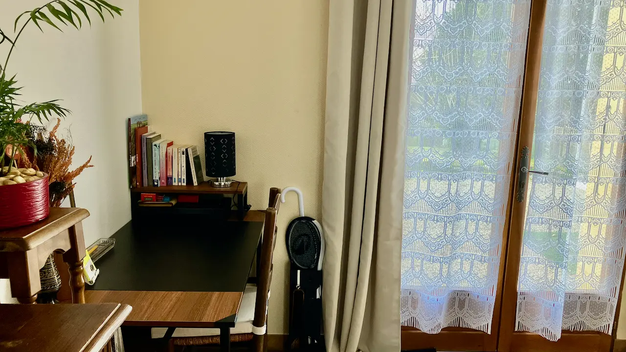 Air-conditioned and bright, with views over a sublime, peaceful landscape, your vacation home (43 m2) is an apartment adjoining our house. It has two independent entrances at ground level, and is set in 7,000 m2 of enclosed grounds. Park your car safely behind our electric gate.