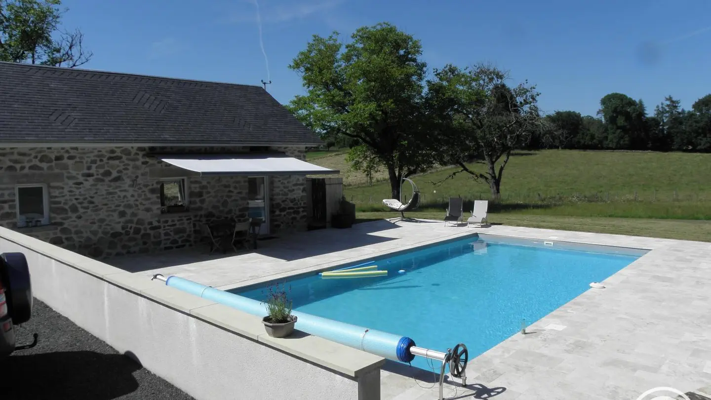 9 kms from Uzerche, "the Pearl of the Limousin", this former sheepfold has been converted into a self-contained gîte, with its own private swimming pool. If you're looking for peace and relaxation, this is the place for you. Come and enjoy the terrace, the 10x5 swimming pool (approx. 1m60 deep) with alarm, and the large garden with unobstructed views over the countryside. Lake with water sports activities 7km away