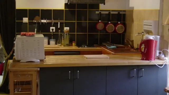 About 2 Km from St Geniès. Le Cantou (Gîtes La Cantharide) takes its name from its majestic traditional fireplace. Its 40 m2 are completed by a 30 m2 terrace.