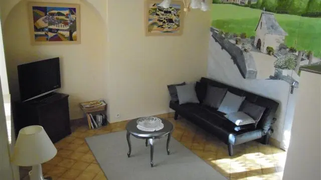 Saint-Paul is a charming village located about twenty kilometres from Tulle, in a very well-preserved environment. The carefully restored house, clad in stone and slate, is divided into two rental units: on one side, the La Fontaine gîte (for 1 to 4 people) is located on the ground floor. The pretty lawned courtyard is beautifully landscaped. La Fontaine gîte comprises a living room (sofa, TV), a kitchenette (gas hob, oven, microwave, coffee maker, toaster, fridge/freezer, washing machine, etc.) and two bedrooms (one double bed, two single beds), a bathroom and a toilet. Private parking