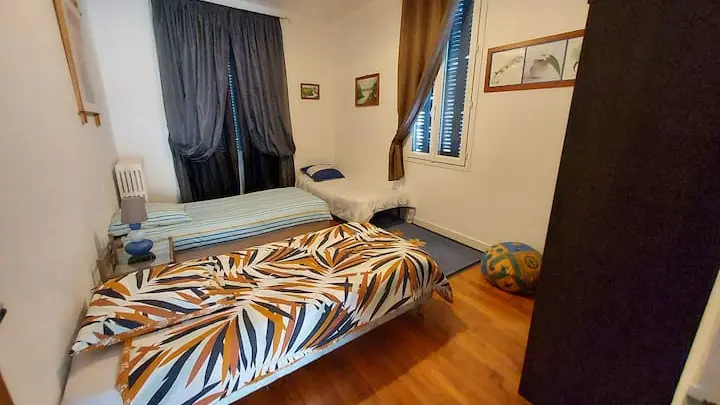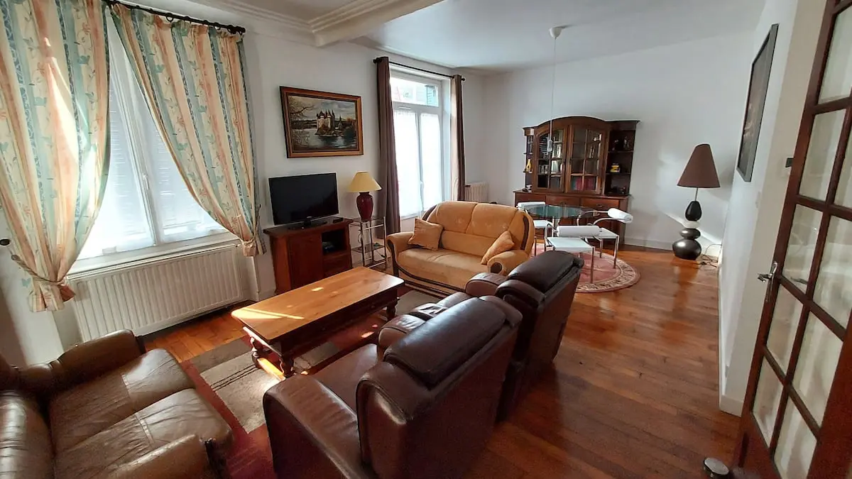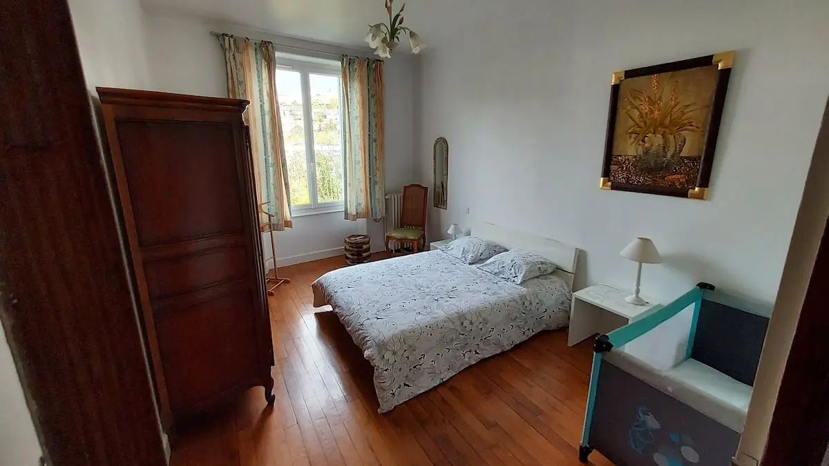 Ideal for a family stay. Garden-facing rooms with views of the Corrèze river. Bakery at the foot of the building. Train station and shops 5 minutes' walk away. No need to worry about parking. 5-minute walk to town center, fully-equipped 85 m2 apartment. Comfort assured. 2 bedrooms with double beds and 3 single beds, bathroom, separate toilet. Fully equipped kitchen.