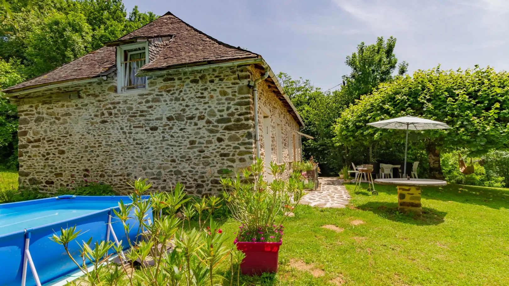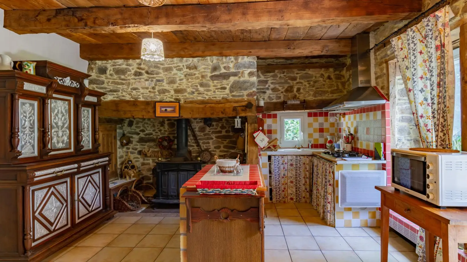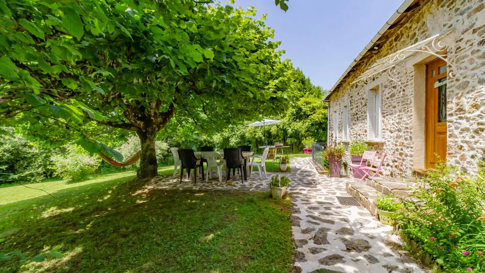 Restored stone house in a hamlet with large garden. A beautiful kitchen/living room and inglenook fireplace will enhance your meals and evenings. The living room upstairs is ideal for relaxing. Payment by bank transfer accepted.