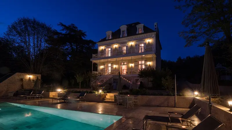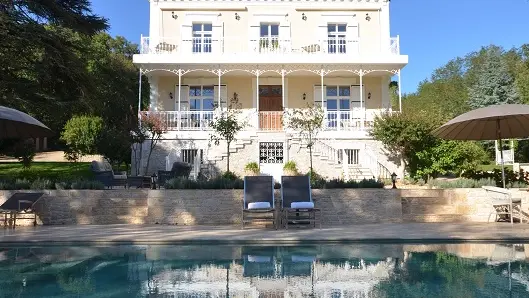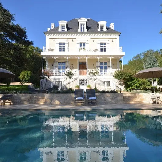 Located in Auriac-du-Périgord, a pretty village in the heart of the famous Périgord Noir, a few minutes from the famous Lascaux caves and the facilities of the town of Montignac, the estate is wooded (15 hectares), promises you an unforgettable stay in its magnificent Maison de Maître, "Laborie", dating from 1904, entirely renovated and offering high standard services.