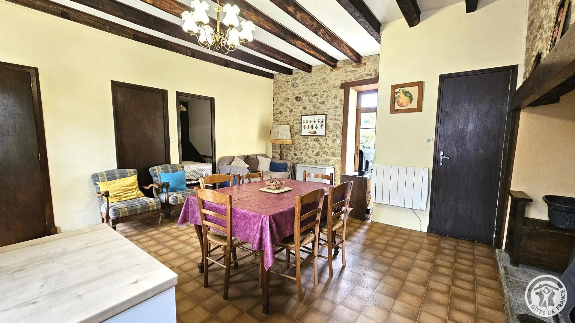 Typical 18th-century character house in stone and old slate in the Traversac region, 10 km from Pompadour, Objat and Vigeois respectively, and 25 km from Brive la Gaillarde. It comprises two adjoining gîtes, each with its own 950 m2 shady, enclosed garden. Sunshine and absolute calm. Located in south-west Corrèze, close to the Dordogne and Lot departments, 45' from Sarlat and Rocamadour and 1h from Limoges, Périgueux and Bergerac. Set in rolling countryside with no overlooking. Gorges de la Vézère 2 km away, fishing, swimming, tennis and horse-riding nearby, walks and hikes on site.