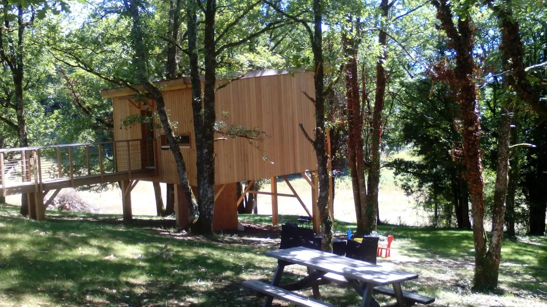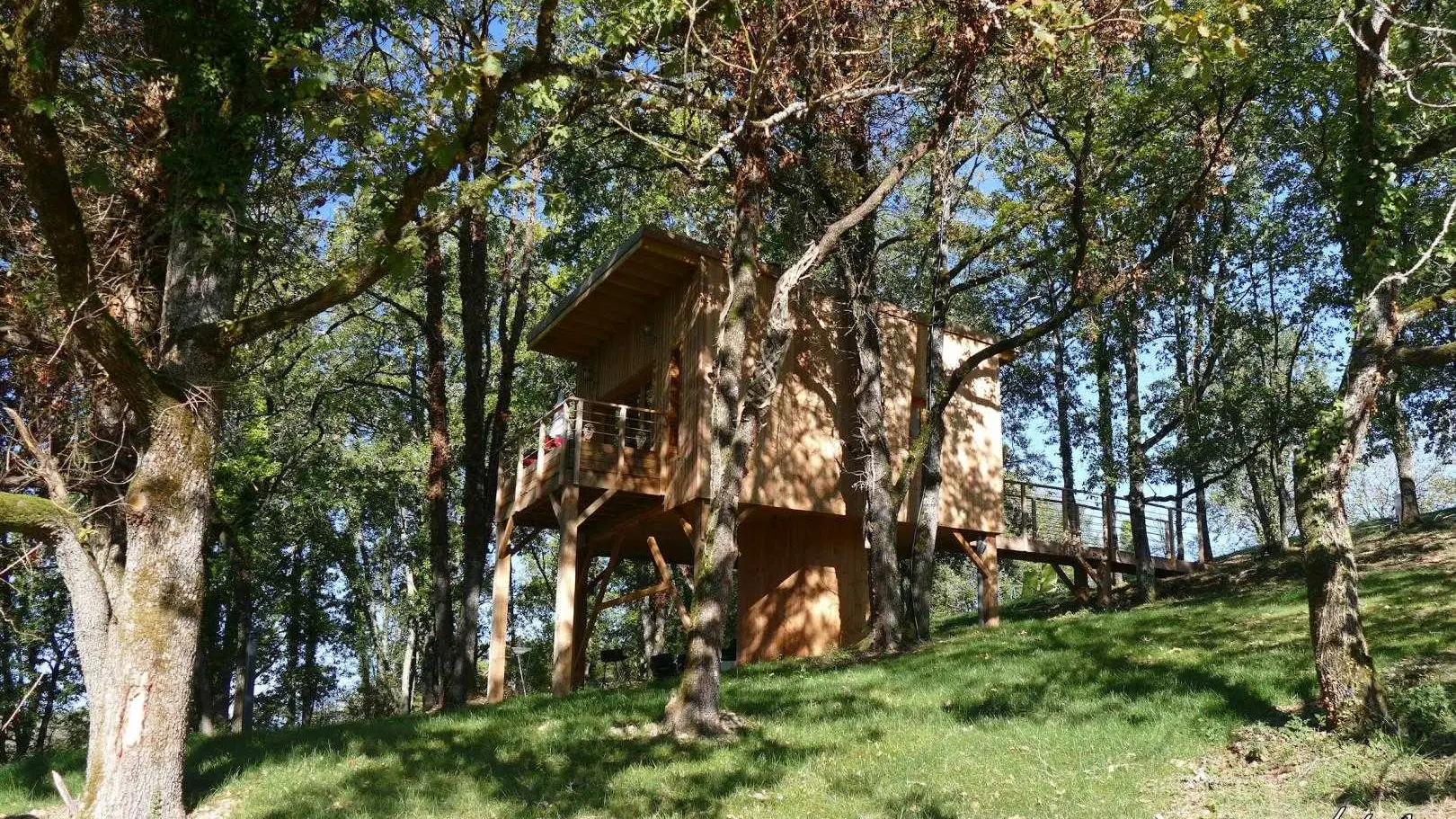 La Cabane d'EmmAxel with private SPA is built on stilts, surrounded by trees, in the heart of the Causse corrézien, just a stone's throw from numerous tourist sites such as Rocamadour, Padirac, Sarlat, Lascaux, Turenne, Collonges la rouge, Le gouffre de la Fage, le lac du Causse... This pretty cabin with its private SPA is made entirely of wood, and has all the comforts you need for an excellent unusual stay in southern Corrèze. In the mornings, you can enjoy your breakfast on the lovely, well-exposed terrace.