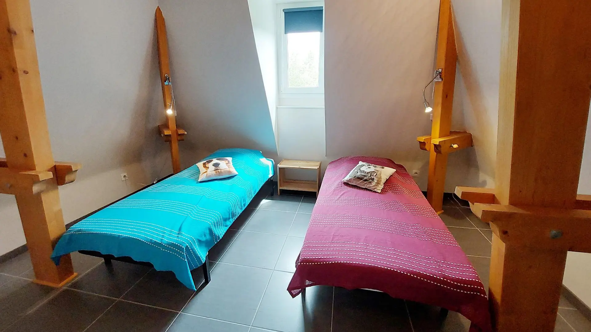 - two bedrooms, one with double bed 140 and the other with 2 beds 90
