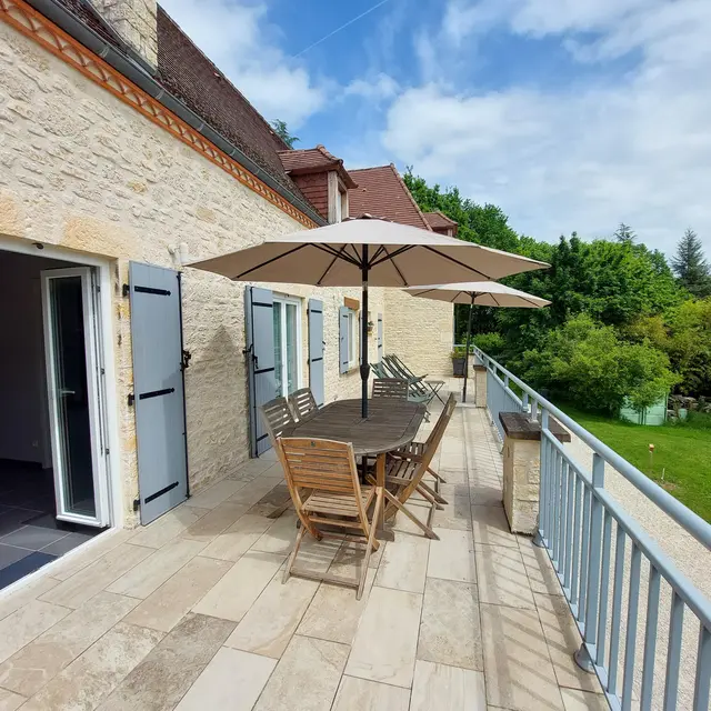 Located just 3 km from downtown Sarlat, in the countryside, in a pleasant green setting. New house offering space and comfort, furnished with great care. Large terrace with garden furniture and barbecue.