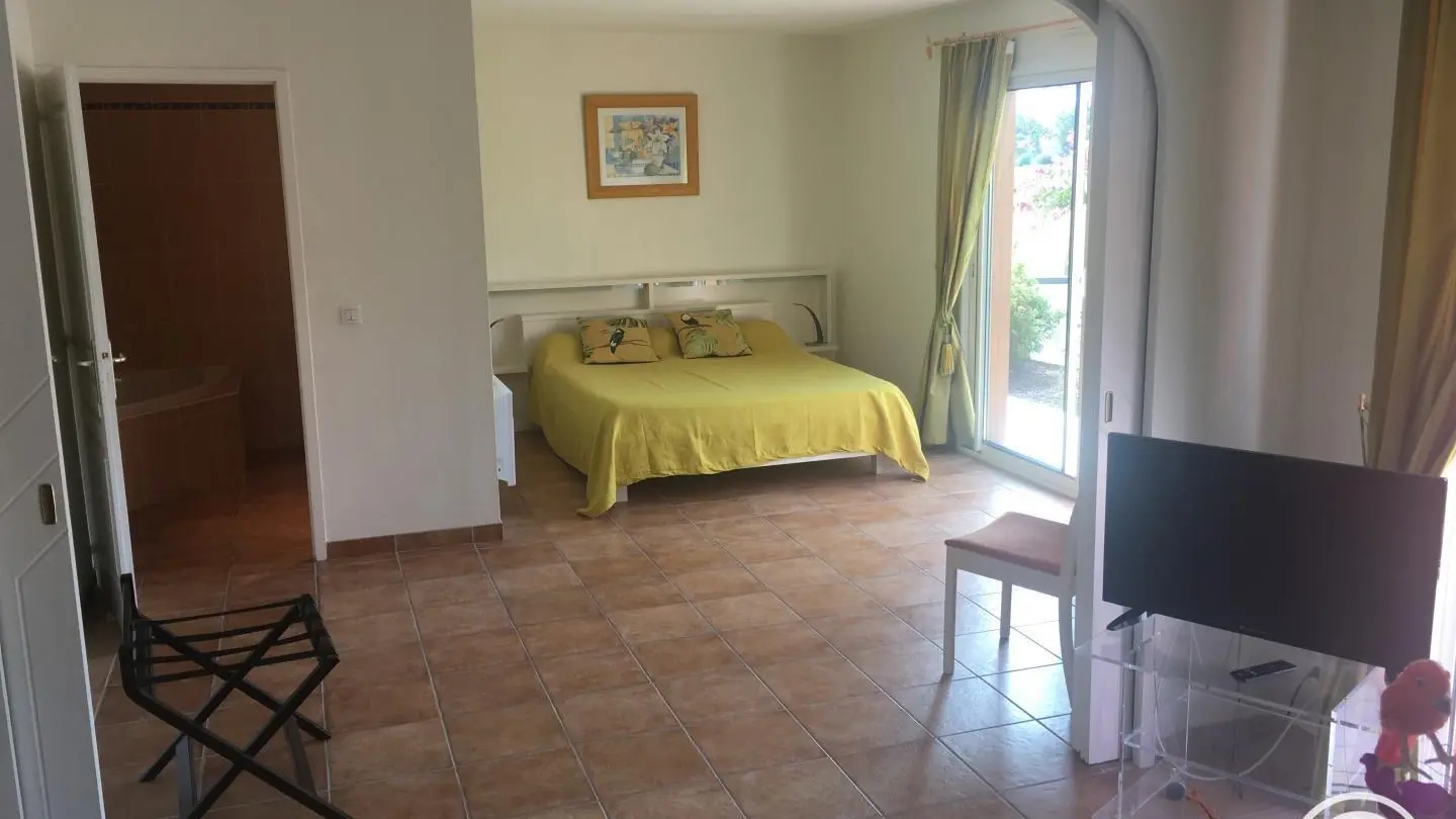 Superb air-conditioned villa "La Coloniale", located 9 km from Brive and 5 km from the A89 and A20 motorways. 5 bedrooms with TV and ADSL. La Provence, very large 50 m2 suite - L'Azur et la Perle, 2 39 m2 suites - La Prune, 35 m2 suite and l'Ivoire, 22 m2 room. Table d'hôtes inside or on the terrace.